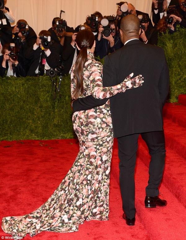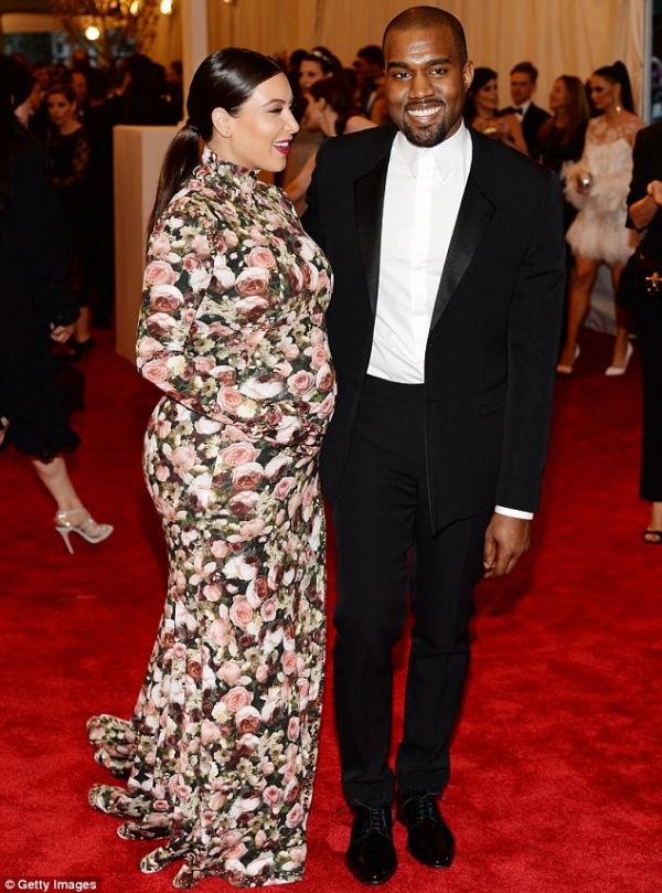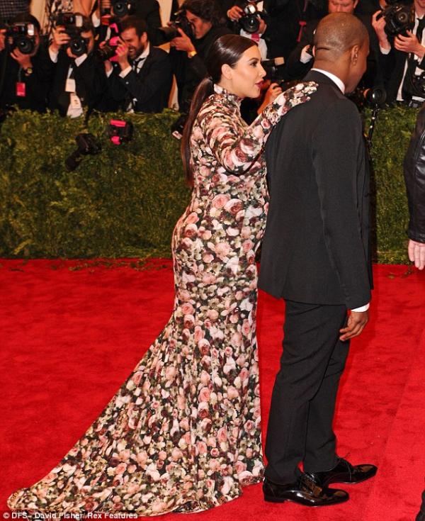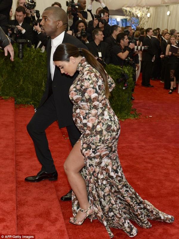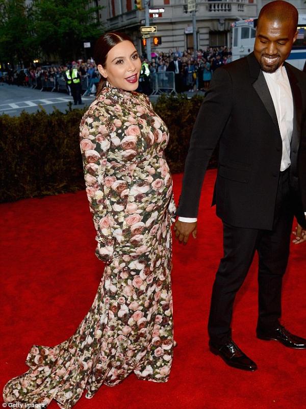 وتألقت كيم(32 عاماً) الحامل بشهرها السادس على السجادة الحمراء بفستان مورّد طويل من تصميم مصمم جيفينشي "ريكاردو تيسكي” ، فغطى الفستان كل منحنياتها وتركت العنان لساقها كما فعلت النجمة انجلينا جولي بفستانها الأسود الشهير في حفل Academy Awards لعام 2012.