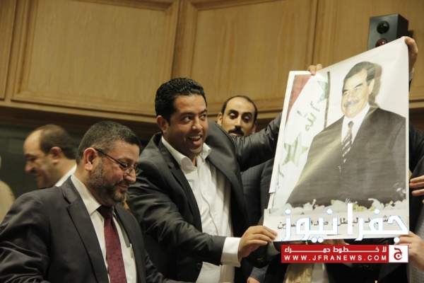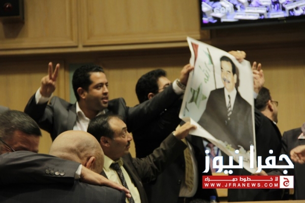 النواب يرفعون صورة صدام حسين وجودة يعلن اعتذار العراق تحت القبة - صور