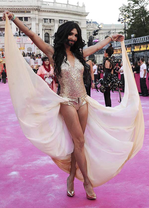 وأشارت الصحيفة الى أن النجوم كانوا مندهشين لحظة رؤيتهم نويورث أو كما يطلق عليه "المطربة الرجل"، إذ عادة ما يتنكر بزي فتاة ويقوم بالغناء تحت اسم "كونشيتا ورست".