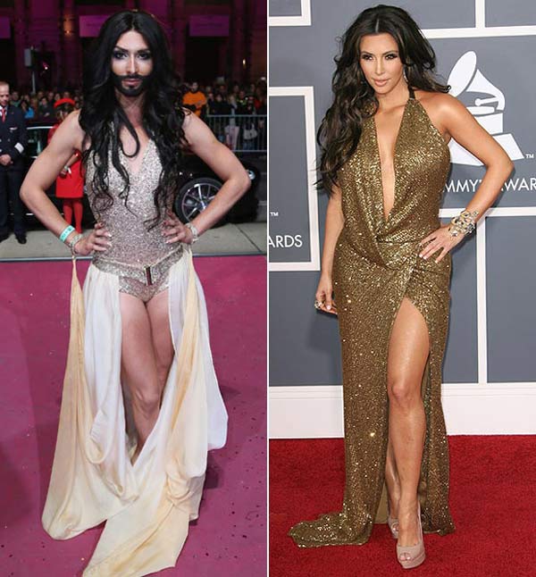 النجوم عبروا عن دهشتهم من التشابه الكبير بين كونشيتا ونجمة تلفزيون الواقع، الأميركية كيم كارداشيان، ليتساءلوا : "هل نمت لحية كيم ام انه المغني كونشيتا؟".