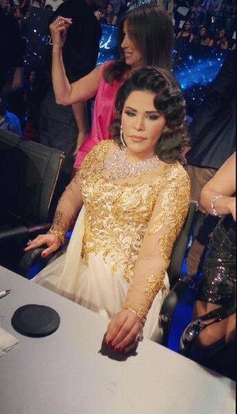 أحلام ارتدت فستان من القماش الذهبي من تصميم طوني يعقوب الذي حرصت على شكره خلال الحلقة الأخيرة لاهتمامه بإطلالاتها طوال هذا الموسم من Arab Idol.