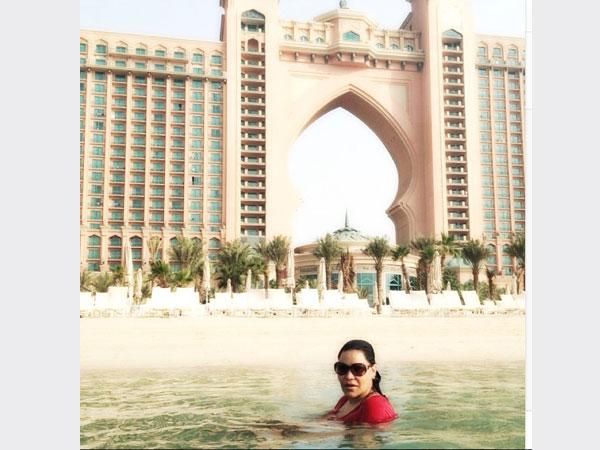ومن بين تلك الصور كانت صورة لإحلام تسبح حيث ارتدت "مايوه" محتشم جداً، كما تضمنت الصور التي نشرتها صوراً للعديد من المأكولات التي اشتهتها أحلام في جزيرة "اتلنتس دبي".