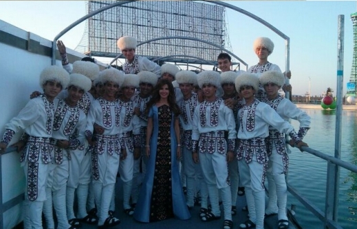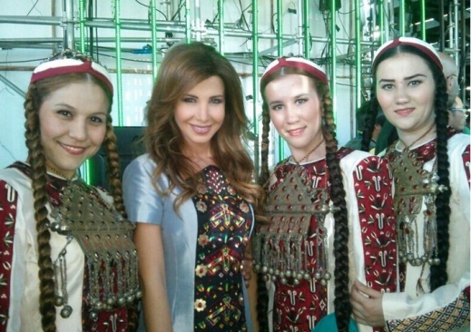 نانسي تتألق بالزي التقليدي التركمانستاني بعيد ميلاد الرئيس