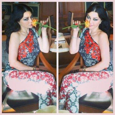 ونشرت هيفا صورة جديدة بمناسبة شهر رمضان حيث حملت وردة تعبيراً عن حبها ونشرت ايضاً صورة أخرى تتنشق فيها رائحة الورود وظهرت بها بإطلالة ناعمة مليئة بالأنوثة.