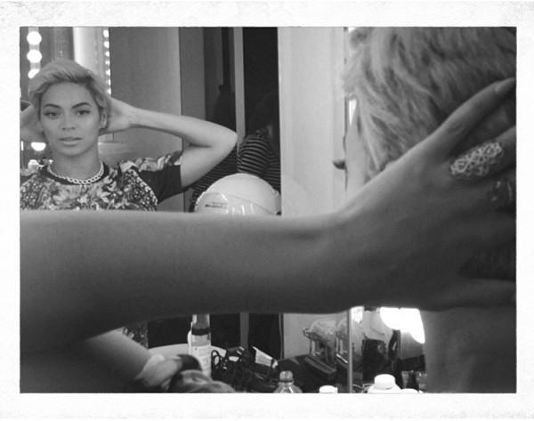 وتظهر بيونسيه، وهي تتأمل شعرها القصير في المرآة.