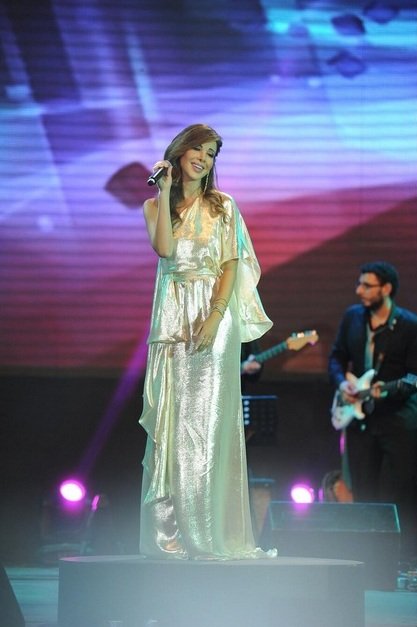تألقت نانسي عجرم خلال الحفل بفستان أبيض من تصميم المصمم العالمي إميليو بوتشي