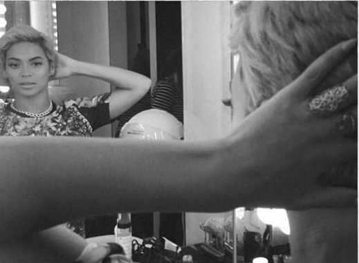 وقارنها بعض المغردون بالممثلة، هالي بيري، التي تعتمد تسريحة مشابهة . وتظهر بيونسيه، وهي تتأمل شعرها القصير في المرآة. وكانت النجمة تعرضت لحادثة مؤخراً، حين علق شعرها بمروحة على المسرح فيما كانت تقدم حفلاً في إطار جولتها الموسيقية "السيدة كارتر".