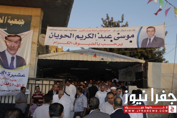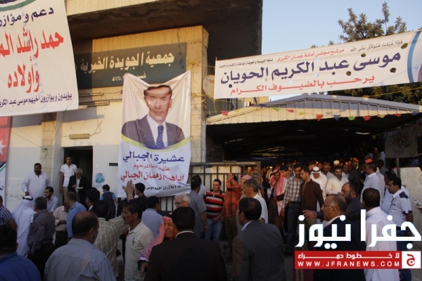 افتتح المرشح للانتخابات البلدية عن منطقة الجويدة موسى عبد الكريم الحويان مقره الانتخابي مساء السبت ، حيث امت حشود كبيرة المقر لمؤازرة المرشح ودعمه للفوز بلالنتخابات البلدية المقبلة .