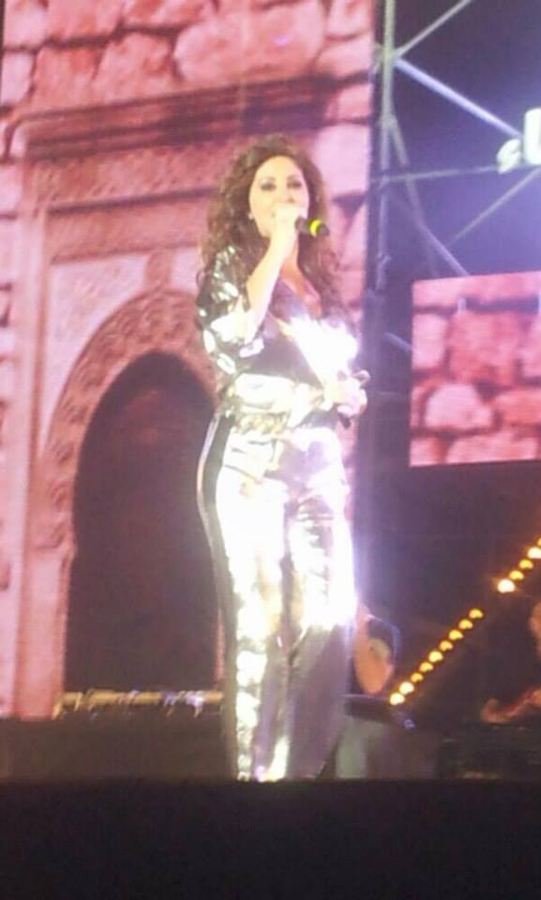 الملاحظ أن إليسا تخلت عن الفستان الأنيق كعادتها في حفلاتها الفنية، وفضلت ارتداء بدلة فضلية لمعت بها في سماء المغرب، كما غازلت الحضور برفع العلم المغربي.