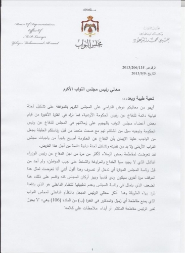 جفرا نيوز - اصدر النائب يحيى السعود بيانا طالب فيه رئاسة مجلس النواب بتشكيل لجنة دائمة داخل البرلمان للدفاع عن رئيس الحكومة عبد الله النسور.