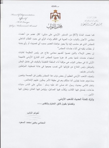 السعود يطالب بتشكيل لجنة دائمة للدفاع عن النسور ..ويقسم على هز اركان المجلس