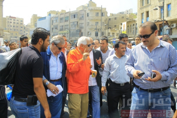 قاد أمين عمان عقل بلتاجي مسيرة نظافة لموظفي الأمانة وعمال الوطن في وسط البلد.