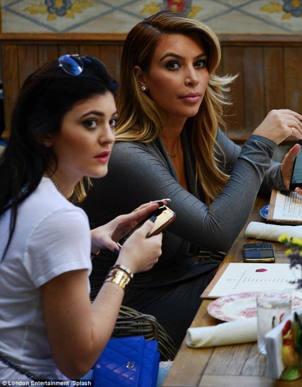 بعدها توجهت كيم برفقة كيلي لتناول الغداء ولحقتهما كلوي كارداشيان ، وتم تصوير لحظات الغداء كمشاهد للمسلسل الواقعي "keeping up with the kardashians "