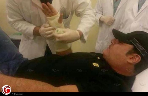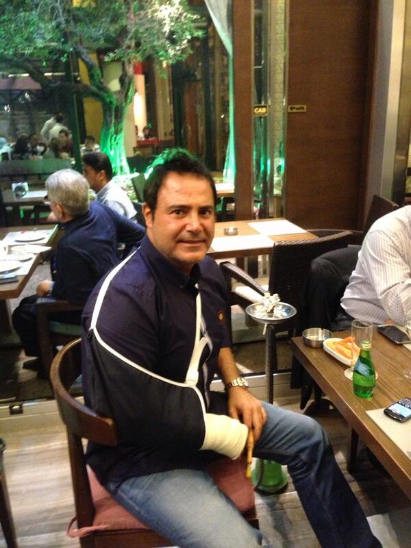 ونشر عاصي صورة حيث كان موجوداً في المطعم وظهر بكامل نشاطه فلم يؤثر الكسر على إشراقة الفارس وقال: 'الشكر الكبير والتقدير لا كل من سأل عني انا بخير والحمدلله'.