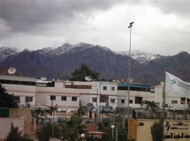 واكتست قمم الجبال القريبة من العقبة باللون الأبيض بعدما هطلت الثلوج بغزارة ليلة الخميس وصباح الجمعة، وأدت إلى انخفاض كبير في درجات الحرارة، الأمر الذي دعا السكان لاستخدام المدافئ نتيجة البرودة الشديدة، حسب السكان.