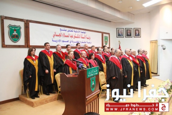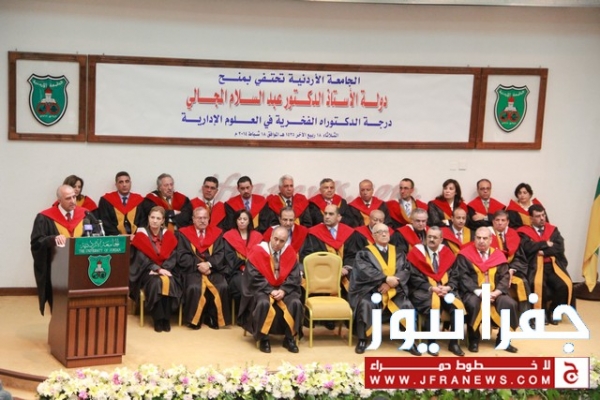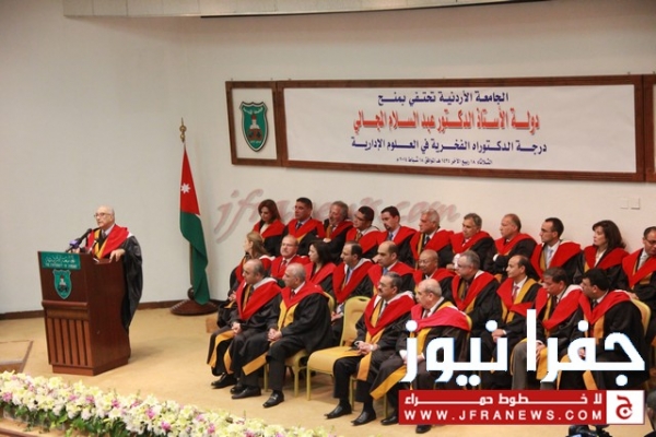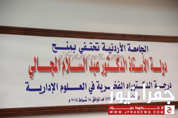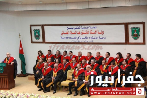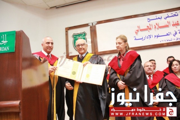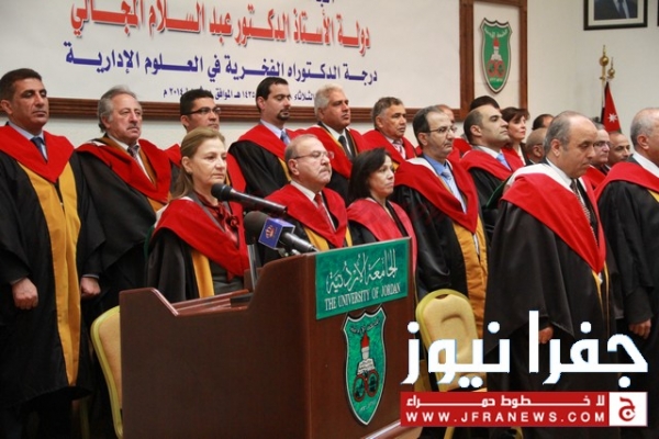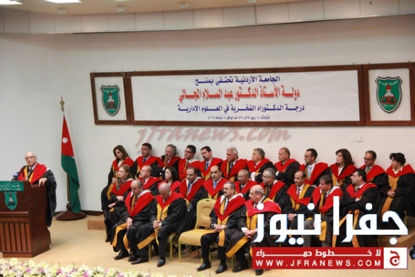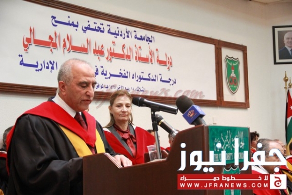 احتفلت الجامعة الأردنية ظهر اليوم الثلاثاء بمنح رئيس الوزراء الأسبق الدكتور عبد السلام المجالي درجة الدكتوراه الفخرية في العلوم الإدارية، بحضور رئيس الوزراء عبدالله النسور ورئيس مجلس الاعيان عبدالرؤوف الروابدة، وشخصيات من كبار رجال الدولة.