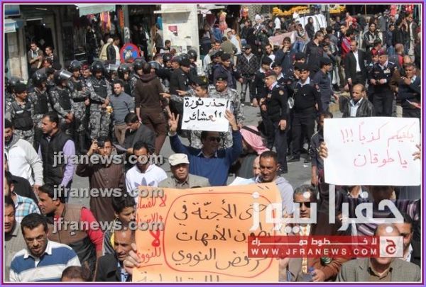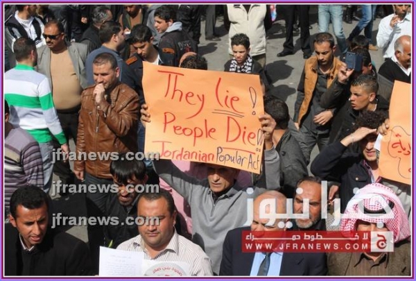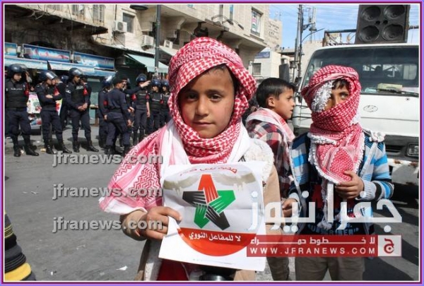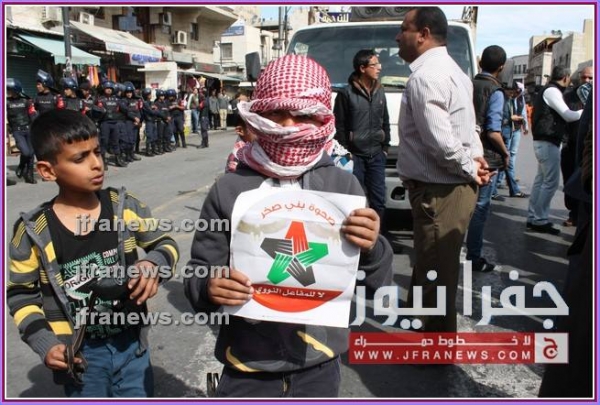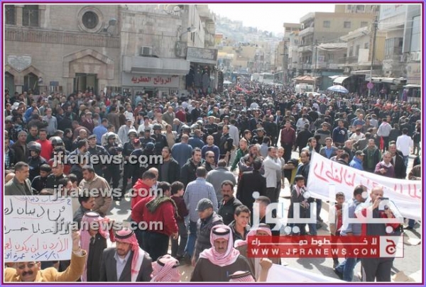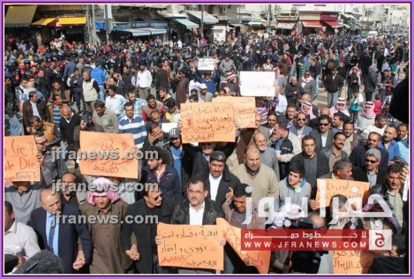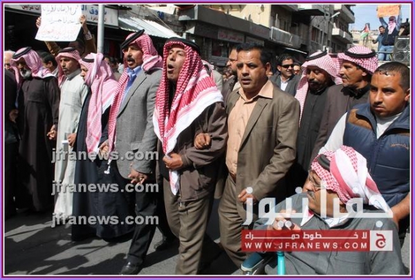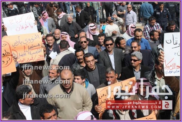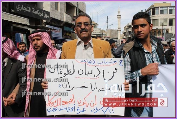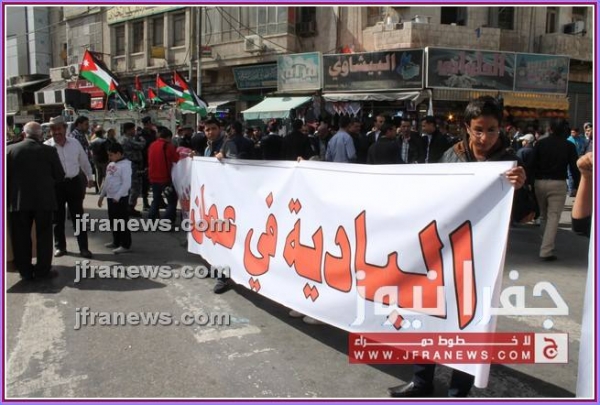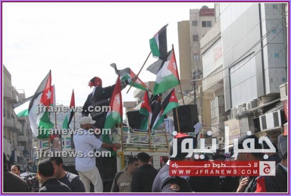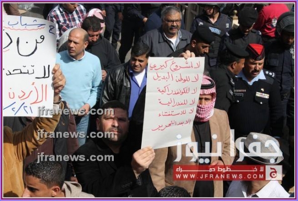 كما عرج المحتجون في كلمات ألقيت خلال المسيرة، على جولات وزير الخارجية الأميركي جون كيري للمنطقة، أكدوا فيها رفضهم لأي تسويات تفضي إلى اعتبار الاردن وطنا بديلا عن فلسطين.