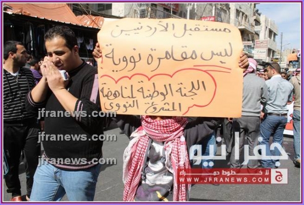 وقال الناطق الاعلامي باسم اللجنة عمر الشوشان، إن هذه المسيرة هي واحدة من سلسلة النشاطات المقرر تنفيذها احتجاجا على قرار إنشاء المفاعل، مؤكدا أن الغاية منها إيصال رسالة احتجاجية سلمية لصاحب القرار في البلاد، لوقف المضي قدما في المشروع.