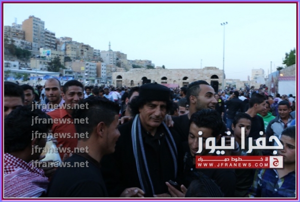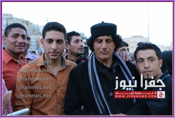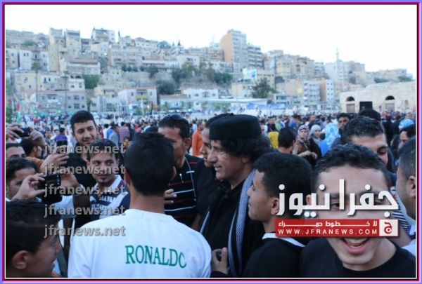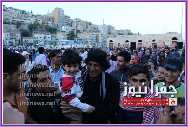 جفرا نيوز تصوير اوسيد صبيحات أحتشد العشرات من الاردنيين اليوم امام شخص " شبيه للرئيس معمر القذافي " الذي تواجد في الساحة مما جعل الشباب يلتقطون الصور التذكارية معه ِ