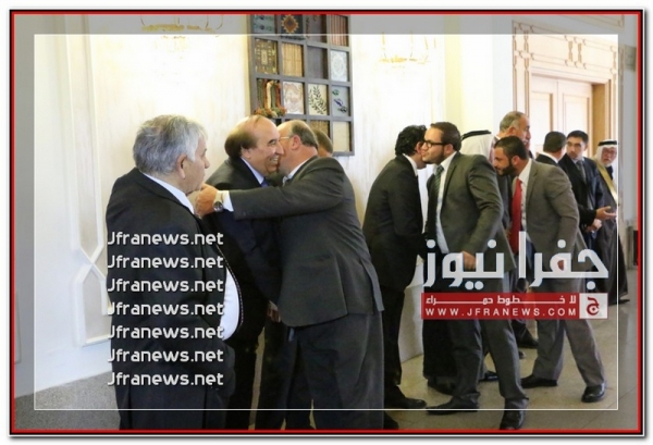 حشود غفيرة قدمت التهاني للعريس وفي مقدمتهم نواب واعيان، وشيوخ عشائر المملكة، ومجموعة من الاعلاميين.