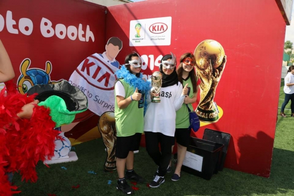 حيث سادت أجواء عارمة من الفرح و السعادة بين الطلاب و ذويهم خاصة ان احد الطلاب سوف تتاح له فرصة ربح رحلة الى البرازيل مع ولي امره لحضور مباراة لكاس العالم من خلال برنامج خاص مقدم من شركة كيا موتورز يدعى "Mascot Friend"
