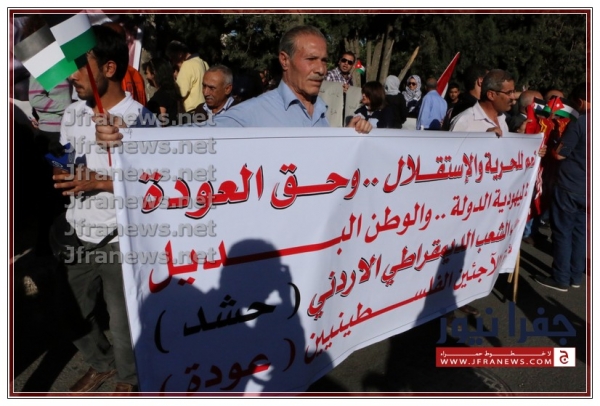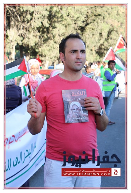 إحياء للذكرى ال ٦٦ للنكبة،نظم عدد من الفعاليات الحزبية والنقابية سلسلة بشرية عصر اليوم الخميس أمام مبنى الأمم المتحدة بالقرب من الجامعة الأردنية.ورفع الحضور على إختلاف توجهاتهم وميولهم الحزبية يافطات مناهضة لما اعتبروه دولة الكيان ورافضة لاستمرار الإحتلال الإسرائيلي للأراضي العربية الفلسطينية.