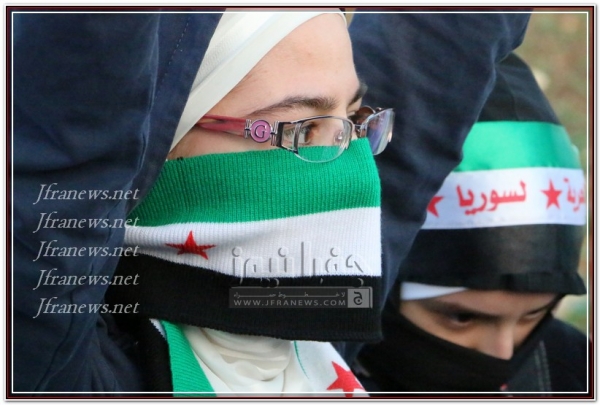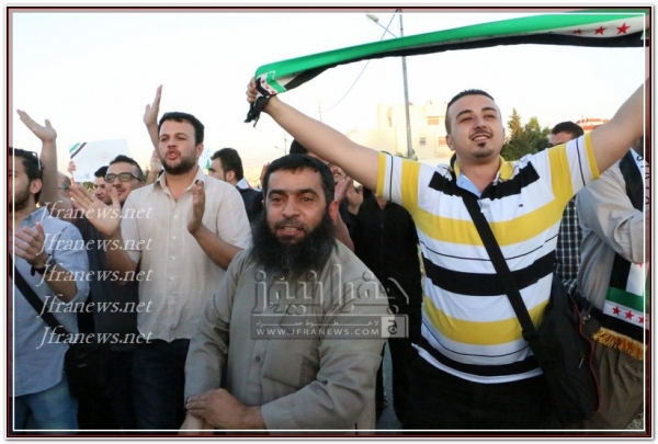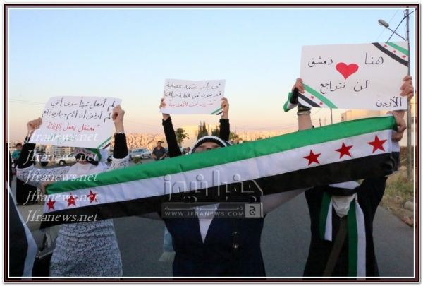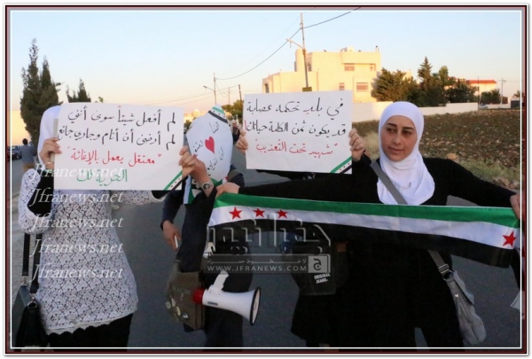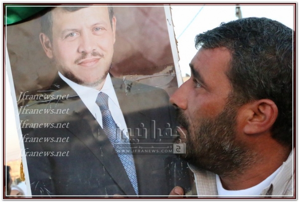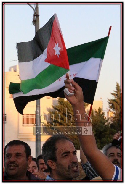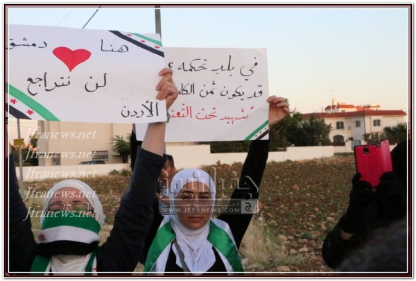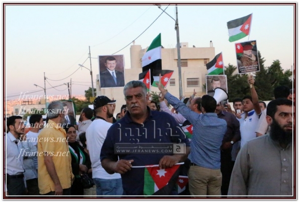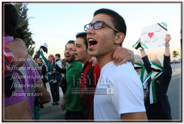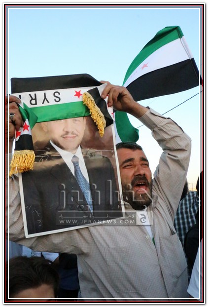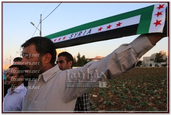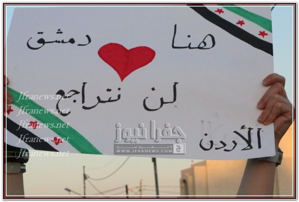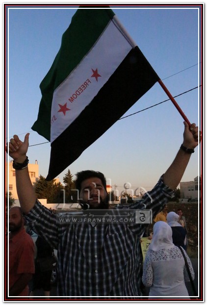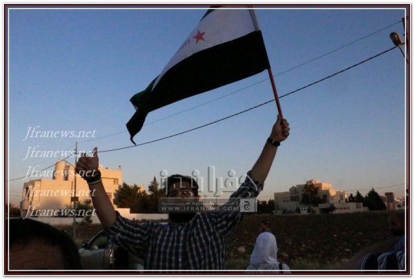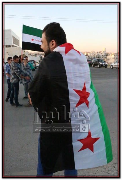 كما رفعوا أعلام الثورة السورية وصور جلالة الملك عبد الله الثاني.