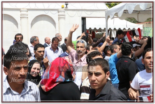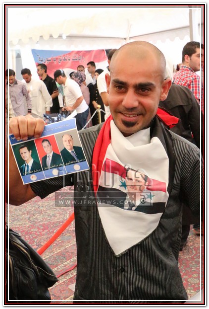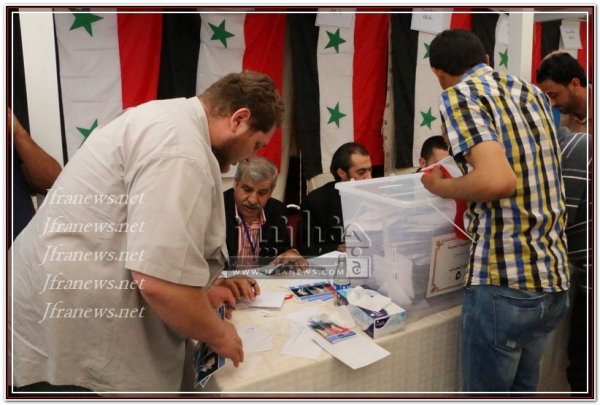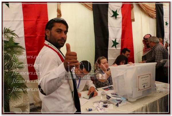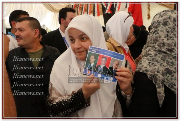 وقد شهدت الانتخابات حماس الناخبين الشباب من العرب السوريين ، حيث اطلقت حناجرهم الهتاف بحياة سورية العربية والجيش العربي السوري البطل وبحياه الرئيس الدكتور بشار الأسد، قائد حركة التحرر العربية بغير منازع .