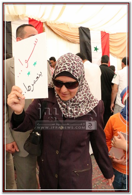 واطلقت العديد من النساء ؛ الزغاريد في هذا العرس الوطني الكبير ، الذي يشهد تعددية وفق الدستور العربي السوري الجديد .
