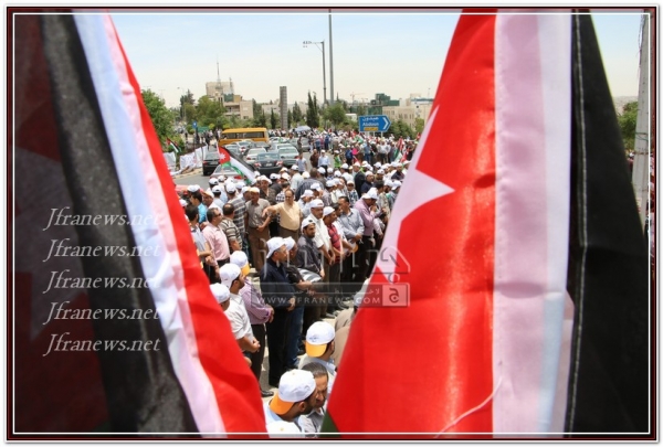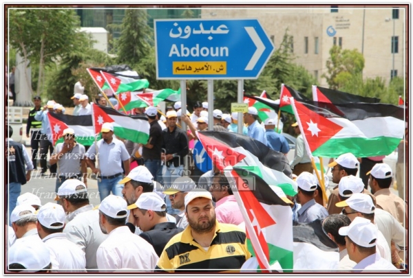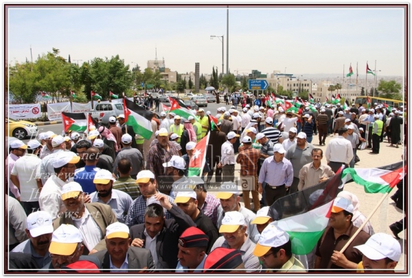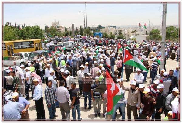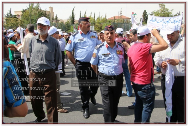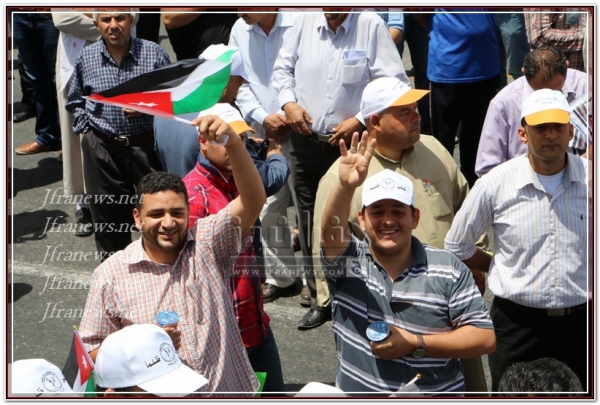 وتوافدت حشود المعلمين من جميع محافظات المملكة للمشاركة في الإعتصام الذي دعت اليه نقابة المعلمين حيث لا تزال الوفود تحتشد ومن المتوقع ان يستمر الإعتصام الى ساعات ما بعد العصر .