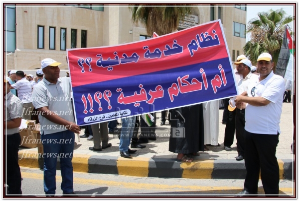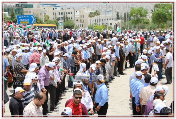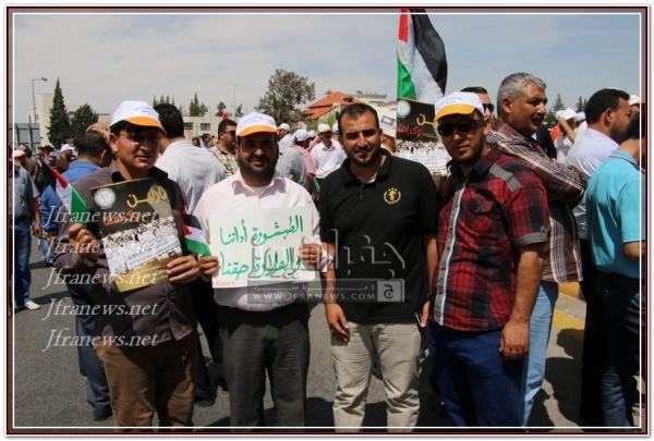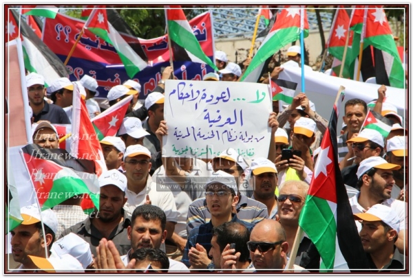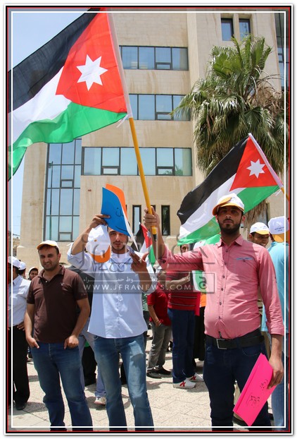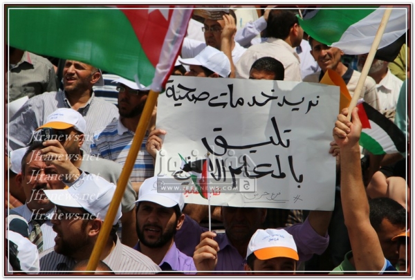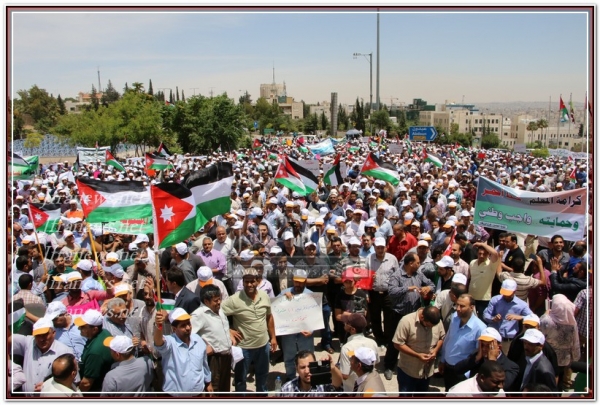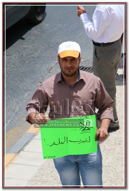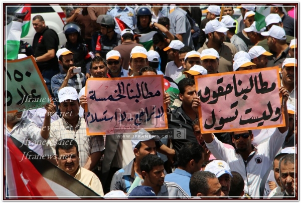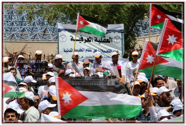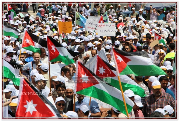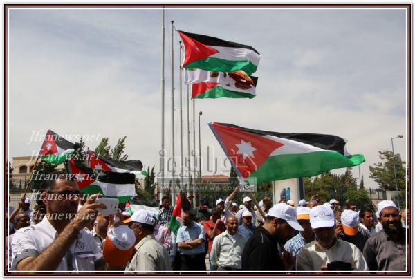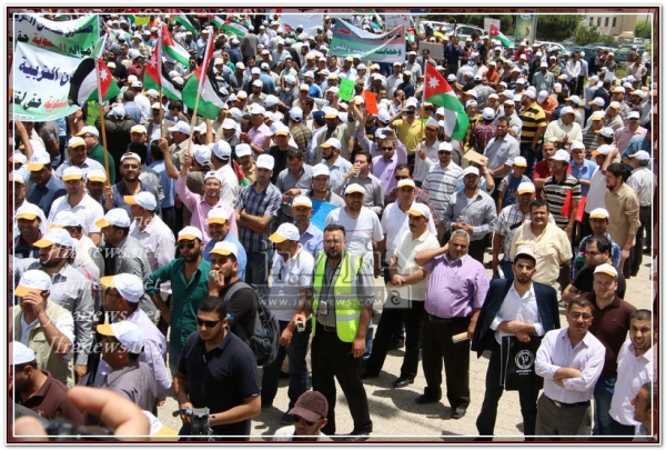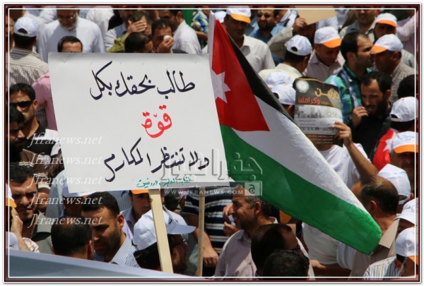 نظم الآلاف من معلمي الاردن ظهر الاحد اعتصاماً حاشداً بالقرب من مقر رئاسة الوزراء على الدوار الرابع في العاصمة عمان مطالبين بقانون عادل يحمي المعلم ويضمن حقوقه الوظيفية.