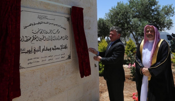 وكان جلالته أزاح الستارة عن اللوحة التذكارية للمسجد، الذي يقع ضمن مقام النبي أيوب عليه السلام في المنطقة التي أطلق عليها اسم خربة أيوب، وبمساحة إجمالية للبناء بلغت 2700 متر، وعلى أرض مساحتها نحو 5 دونمات.
