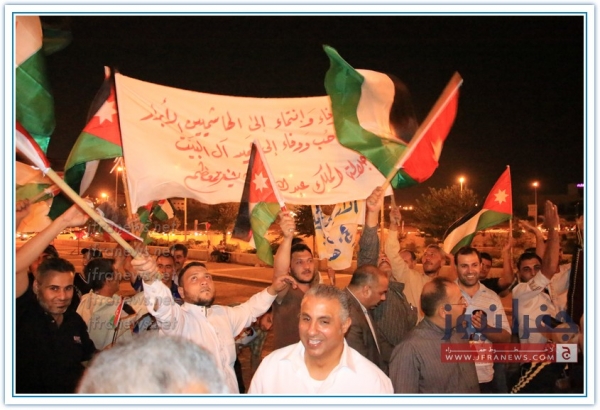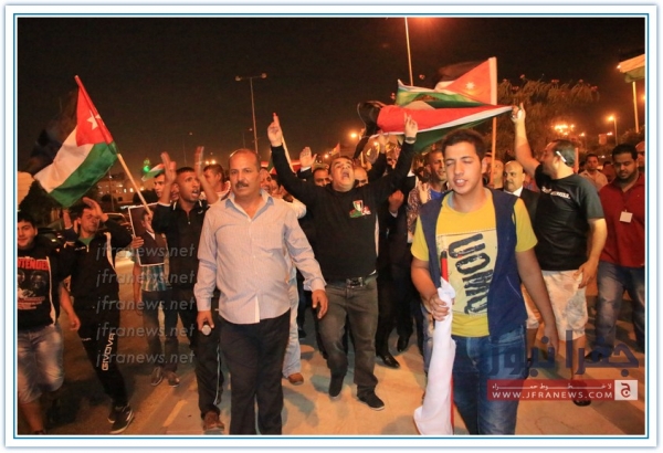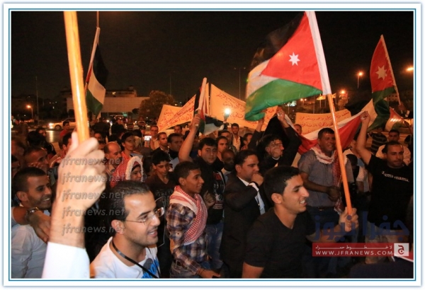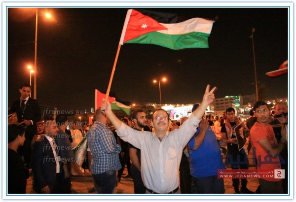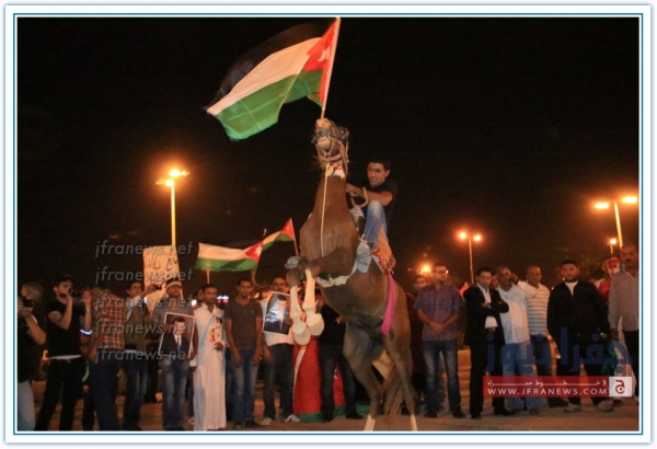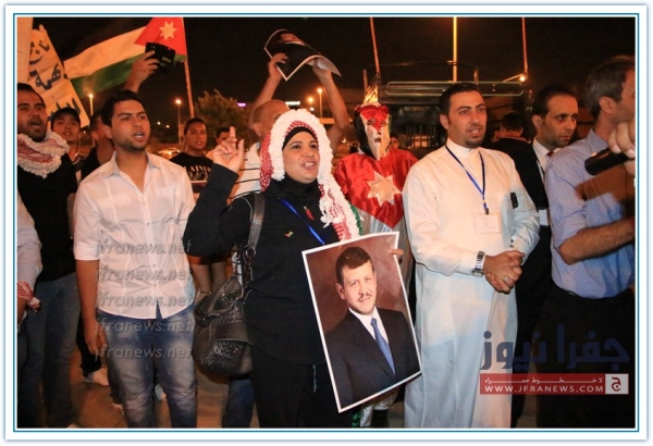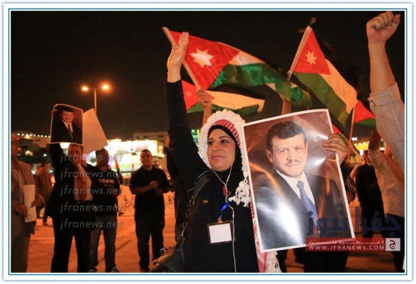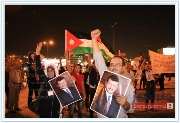 بالقرب من دائرة المخابرات العامة في عمان ضمت حشود من المواطنين الذين حضروا من معظم ارجاء الوطن وذلك من اجل مساندة الاجهزة