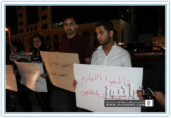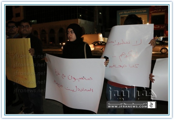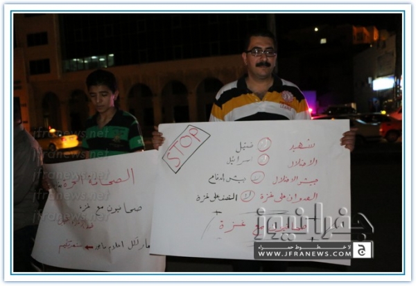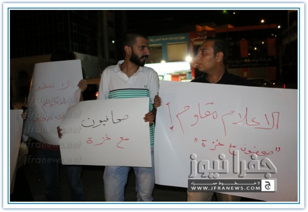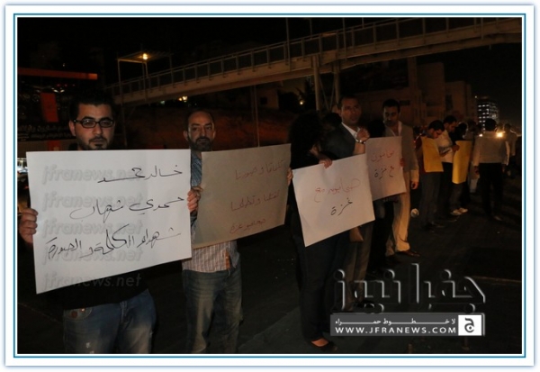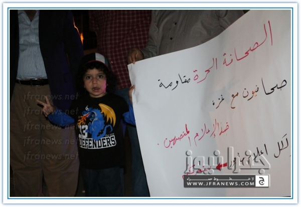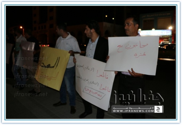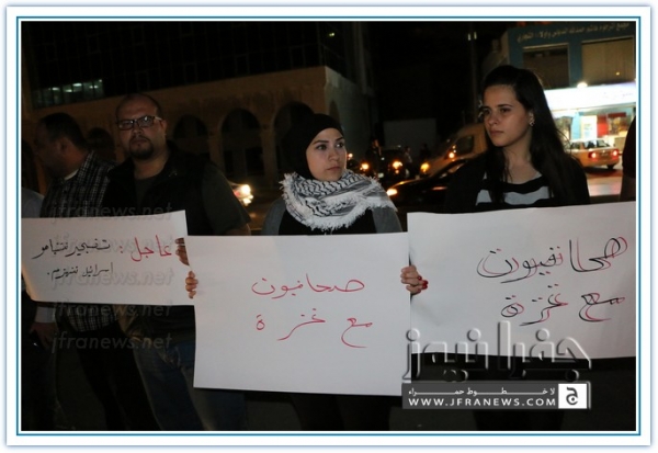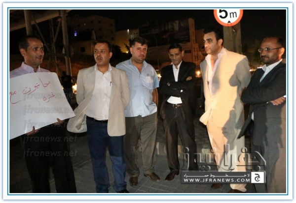 ويذكر ان هذه الفعالية جاءت بعد ان حشد لها الزملاء على مواقع التواصل الاجتماعي تحت شعار 'صحفيون مع غزة'.