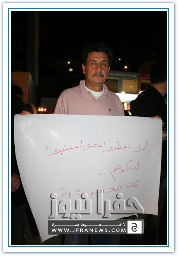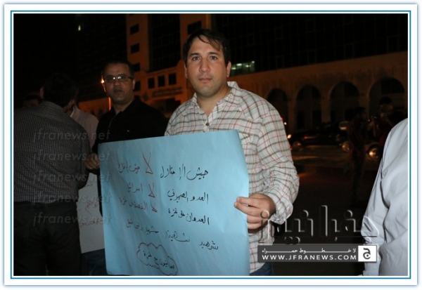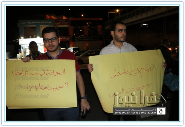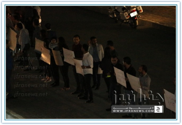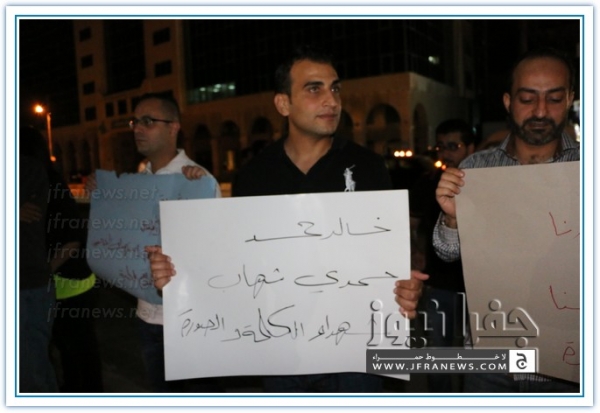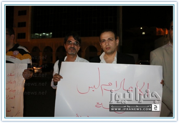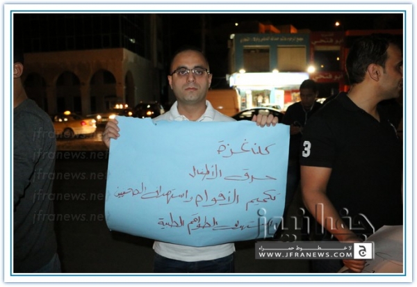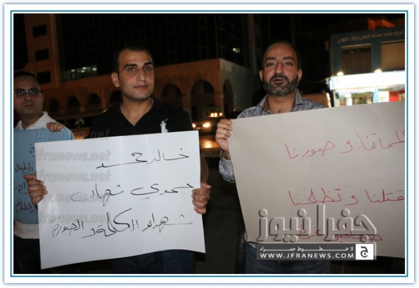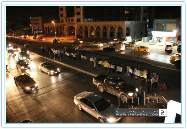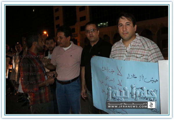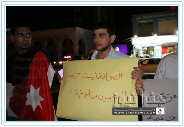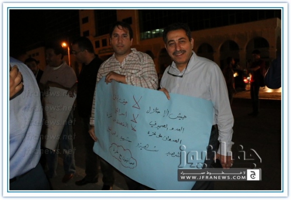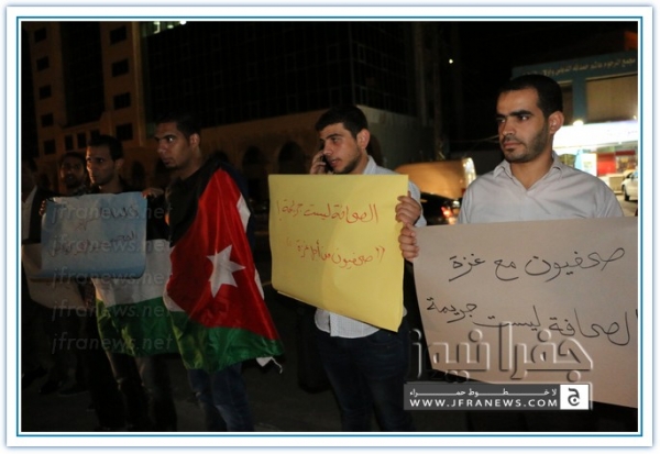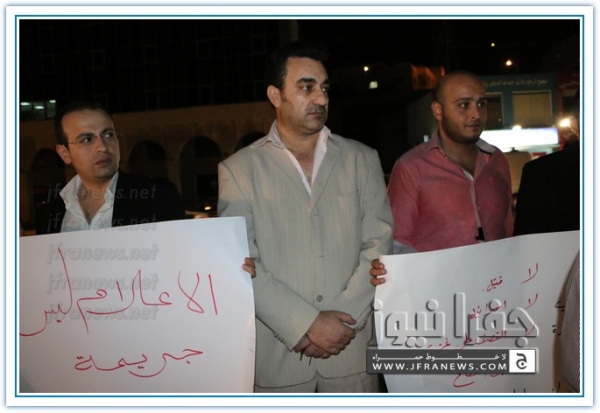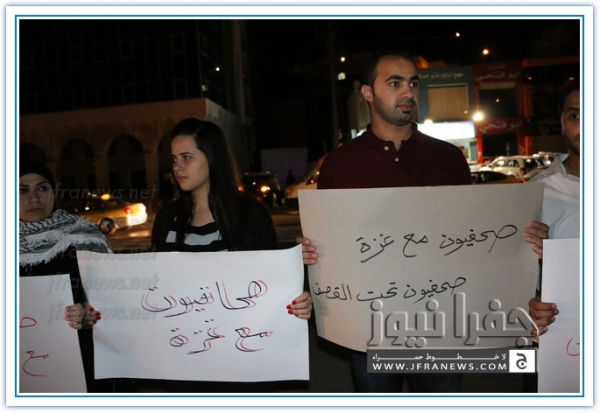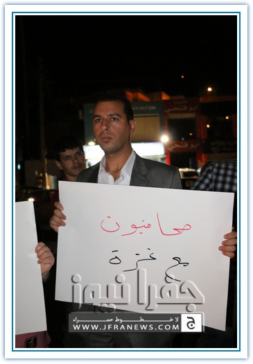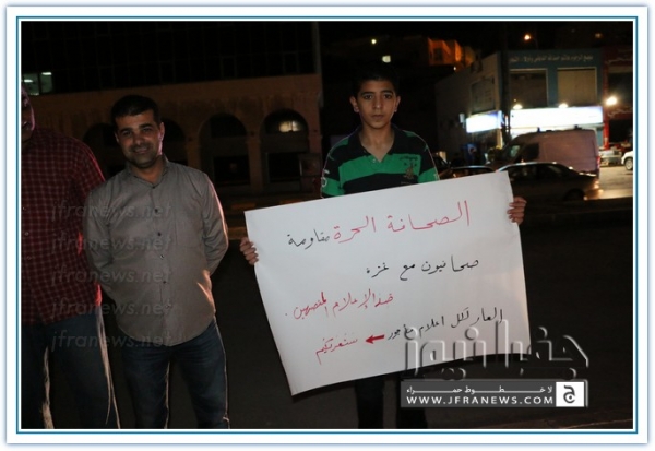 نفذ عدد من الزملاء الصحفيين مساء اليوم الاربعاء اعتصاما قبالة صحيفة الدستور تضامنا مع الشعب الفلسطيني في غزة وتنديدا بالجرائم والمجازر البشعة التي ترتكبها قوات الاحتلال الاسرائيلي ضد المواطنين الفلسطينيين الأبرياء من الشيوخ والاطفال والنساء.