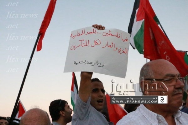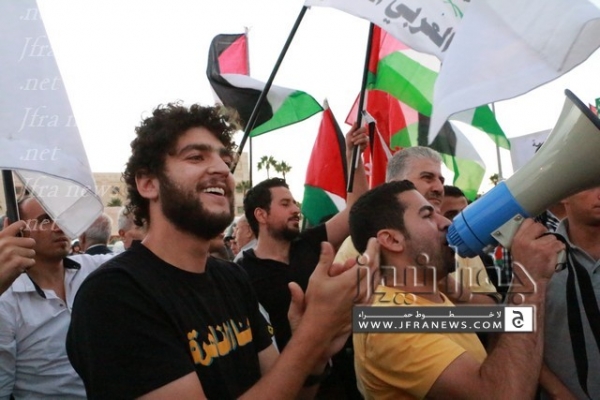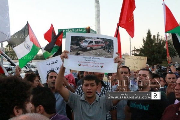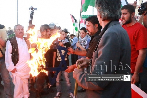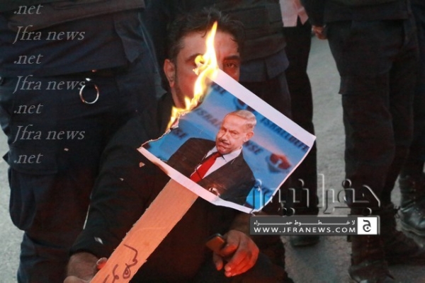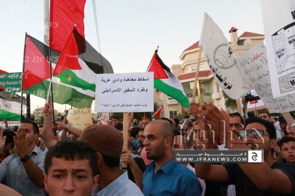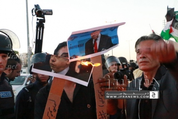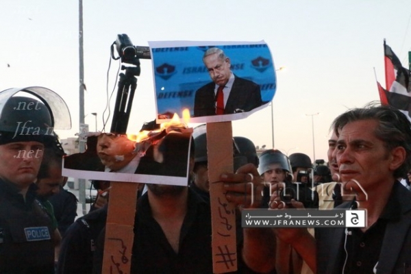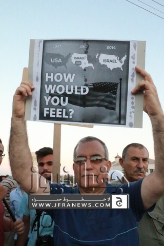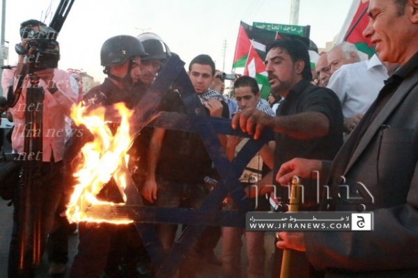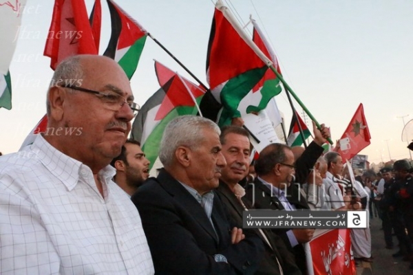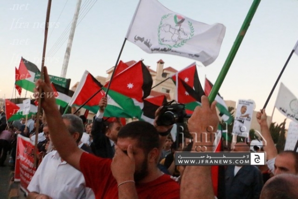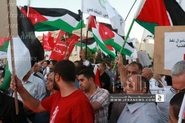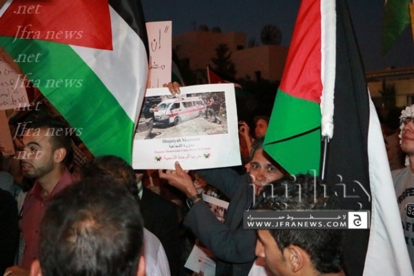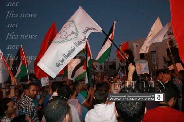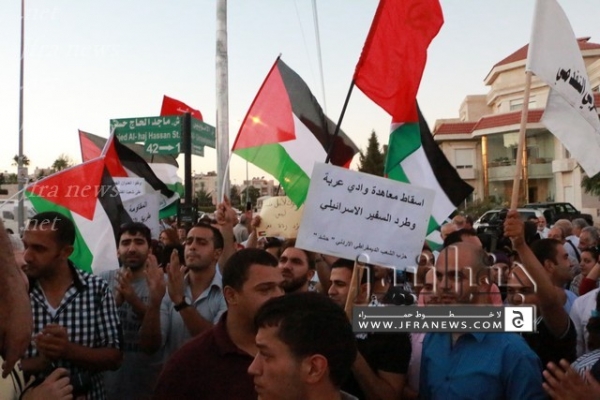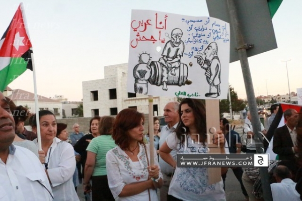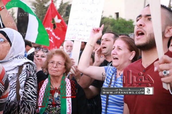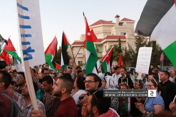 نفذ المئات من اعضاء الحزب الشيوعي الاردني وقفة غضب امام السفارة الامريكية مساء الاحد ،عقب تصريحات رئيس الوزراء الدكتور عبدالله النسور بعدم استدعاء السفير الاردني من اسرائيل . وطالب المشاركون بطرد السفير الاسرائيلي والامريكي فورا وسحب سفيرنا من تل ابيب تعبيرا عن حفظ كرامة دماء الشهداء في غزة المنكوبة. ونددوا بالمجازر الصهيونية والاعتداء الوحشي البربري الغاشم على اهالي قطاع غزة مطالبين المجتمع الدولي والعربي برفع الحصار عن اهالي القطاع بالسرعة القصوى. وفور وصول المحتجين الذين تواجدوا بشكل مفاجئ امام محيط السفارة هرعت قوات الدرك ورجال الامن مشكلةً طوقأ امنياً على محيط السفارة تحسباً لأي اعتداء على السفارة وكوادرها. وصدحت حناجر المشاركين بالهتافات التي حيت المقاومة الفلسطينية الباسلة واستنكرت صمت وتخاذل الحكام العرب على حد وصفهم. ومن هتافاتهم : امريكا راس الحية .. امريكا اصل الارهاب .. من عمان تحية .. لغزتنا الابية . لا سفارة صهيونية .. على الاراضي الاردنية . وقاموا بحرق العلم الامريكي والصهيوني تعبيراً عن غضبهم ورفضهم ازاء ما يحدث بغزة. وقال احد المشاركين انهم لن يتوانوا عن خدمة الفلسطينيين خاصة قطاع غزة الذي يشهد منذ 28 يوماً اعنف طرق القصف ووحشية منقطعة النظير. وكان رئيس الوزراء الدكتور عبدالله النسور اكد خلال جلسة بدار رئاسة الوزراء الاحد ان سحب السفير لا يحتاج سوى تلفون ولكن بحساب الارباح والخسائر من يربح ومن يخسر من عملية سحب السفراء. واضاف 'ان سفيرنا موجود لخدمة مصالح ابناء الضفة الغربية الذين تمر طريقهم فقط من الاردن وكذلك الامر بالنسبة لبضائعهم ودوائهم وسفرهم ورحلاتهم الى العمرة والحج والامر ينطبق ايضا على ابناء عرب ال 48 وقطاع غزة'. - f