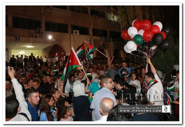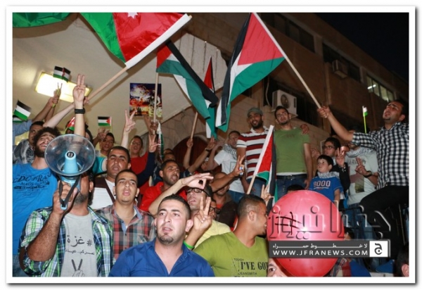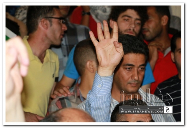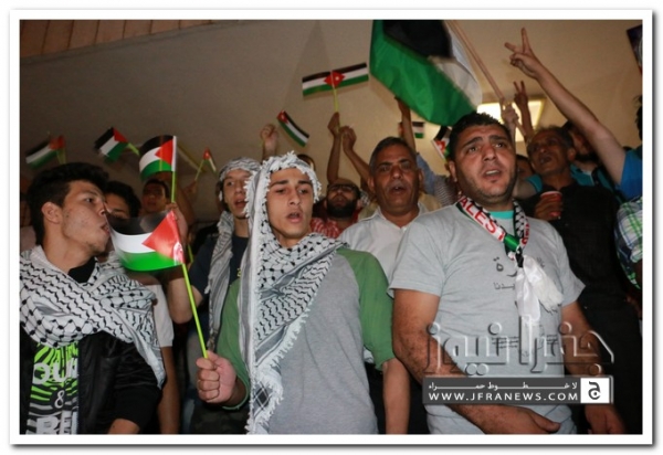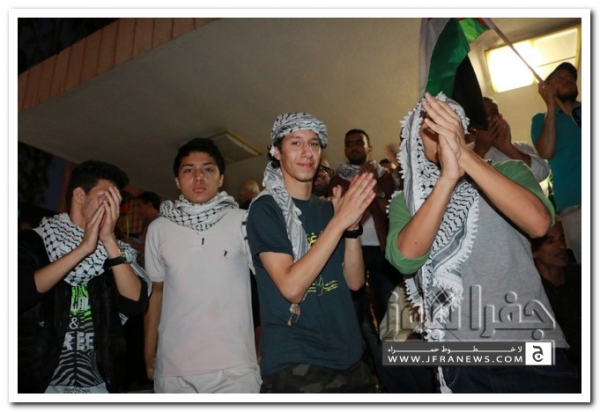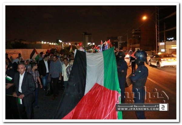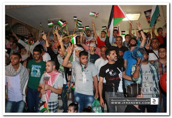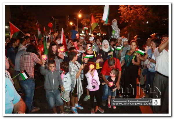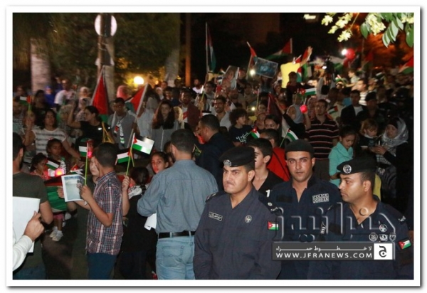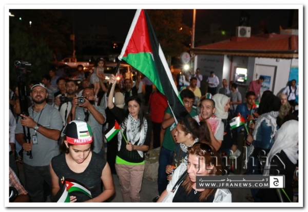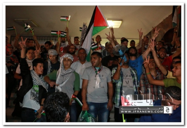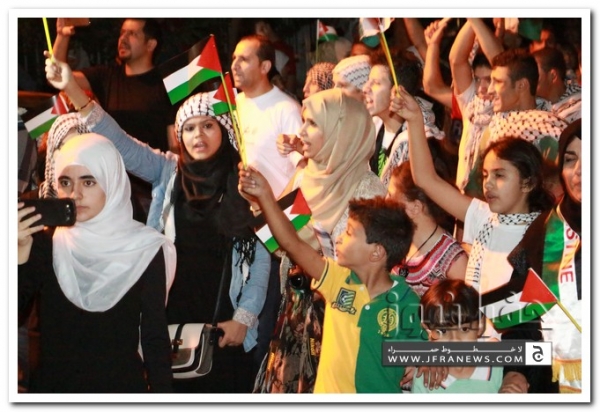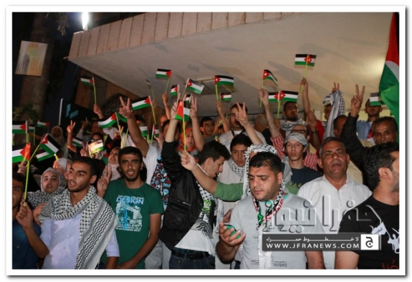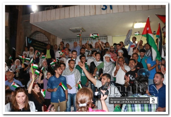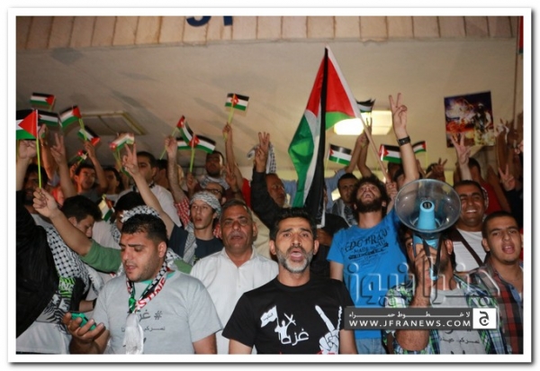 واستنكر المشاركون جرائم الاحتلال على الارض الفلسطينية ومن عليها من اطفال ونساء ومستشفيات ومدارس وكوادر اسعاف.