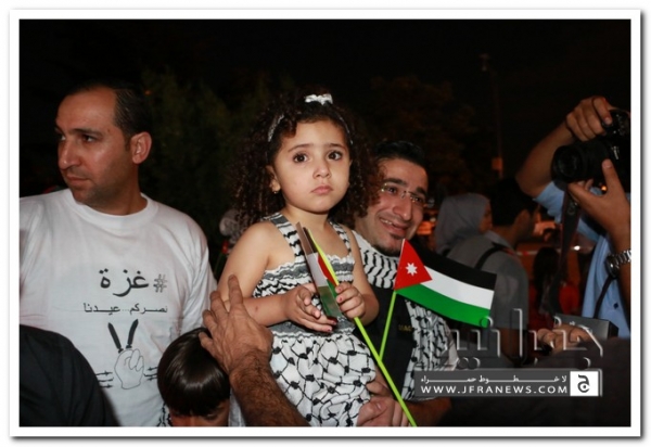 عبّر أطفال اردنيون مساء الثلاثاء عن تضامنهم مع اقرانهم من اطفال قطاع غزة باضائة الشموع أمام مقر الامم المتحدة في ضاحية الشميساني.