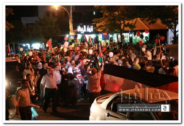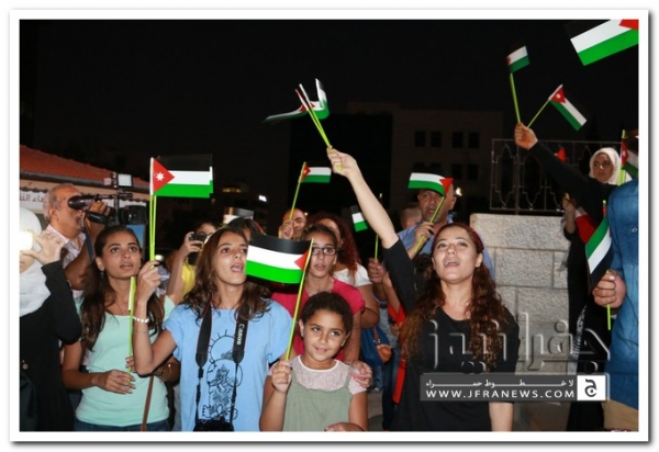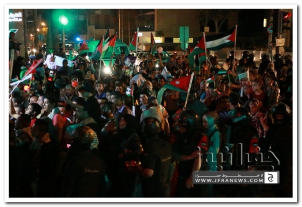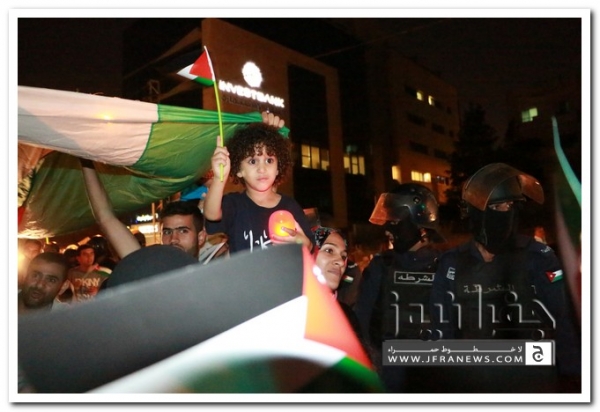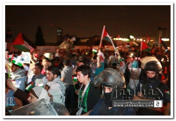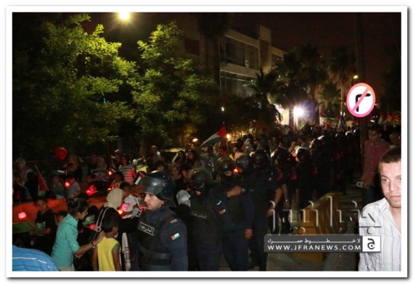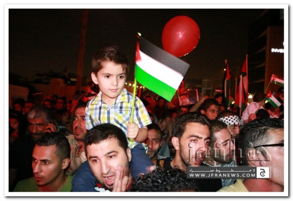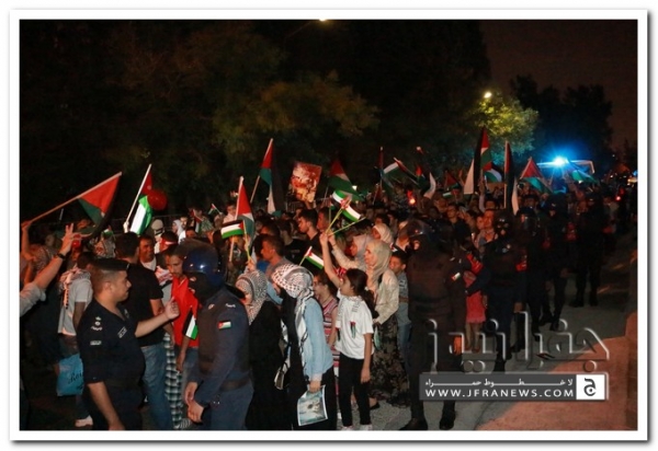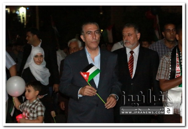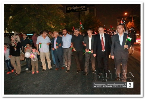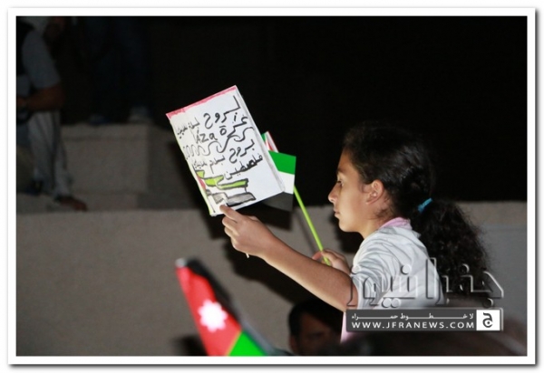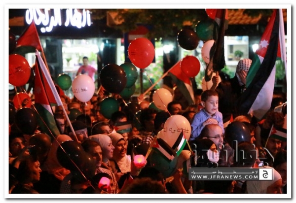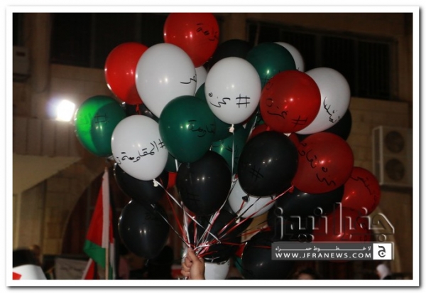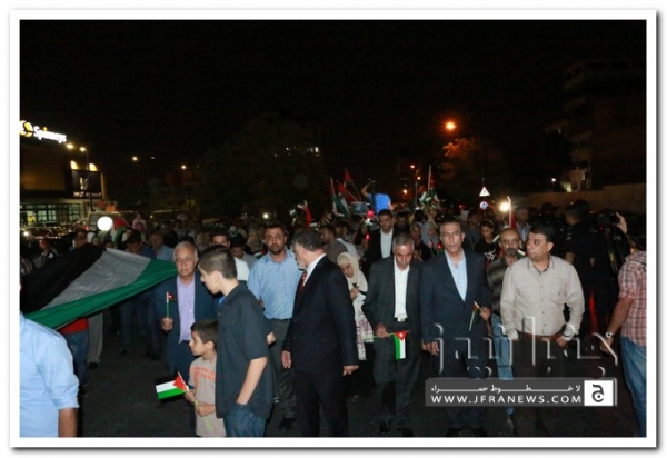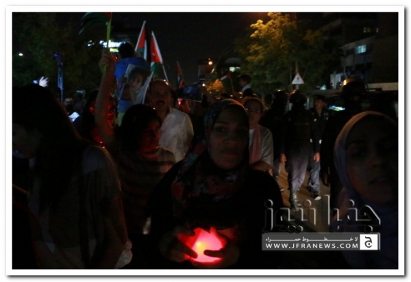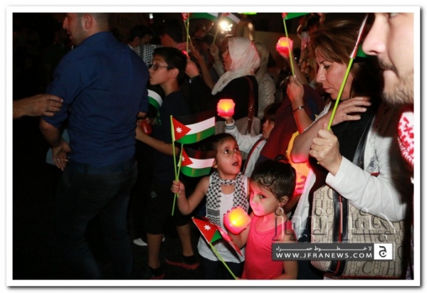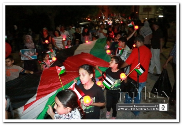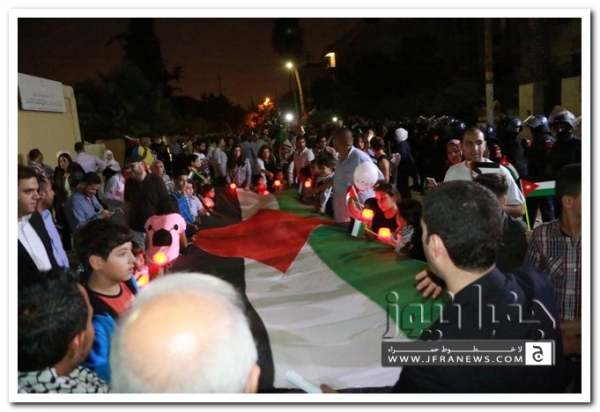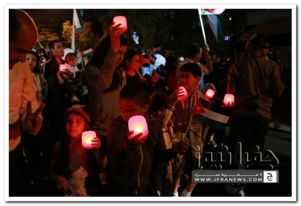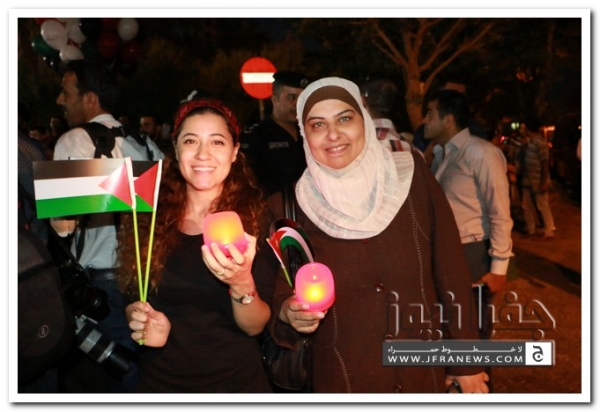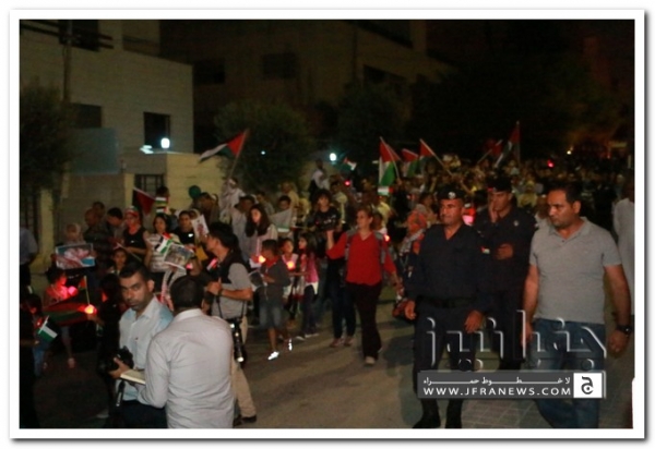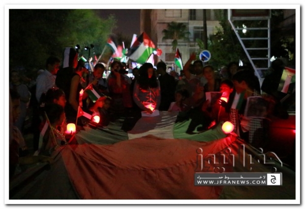 وجاءت الفعالية بتنظيم من لجنة فلسطين في مجمع النقابات المهنية التي دعت الى مسيرة شموع انطلقت من امام مقر المجمع في الشميساني الى مقر الامم المتحدة.