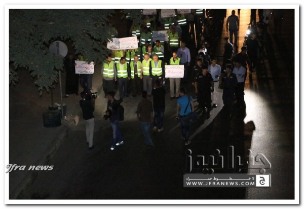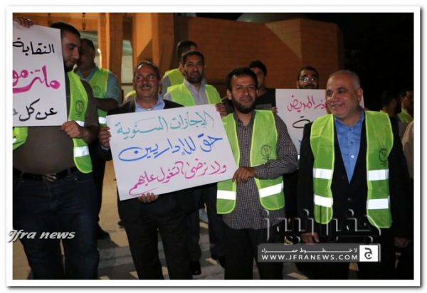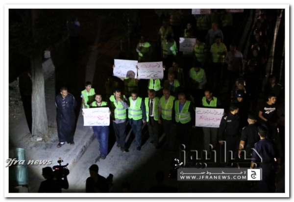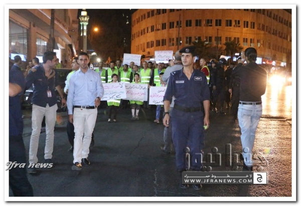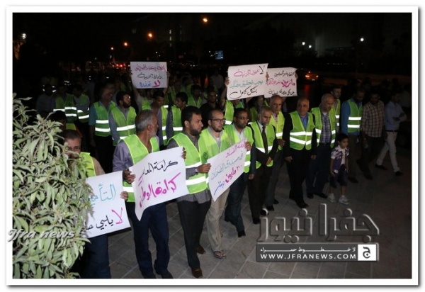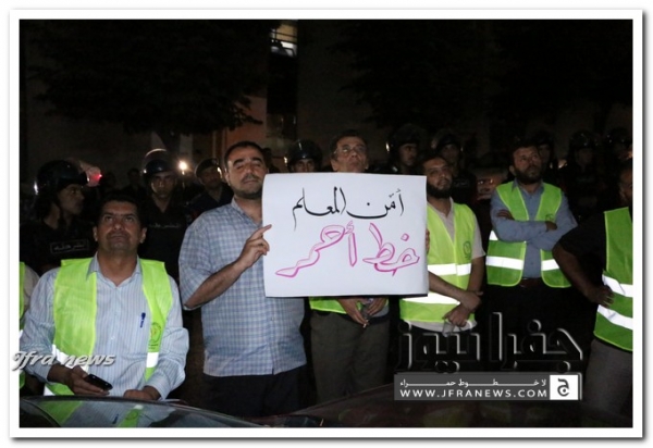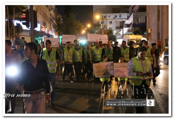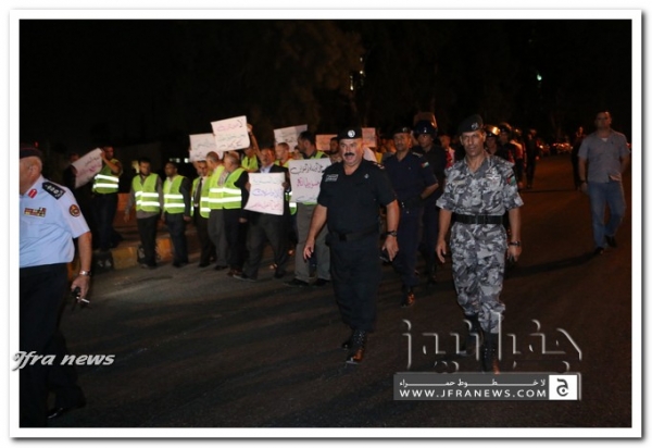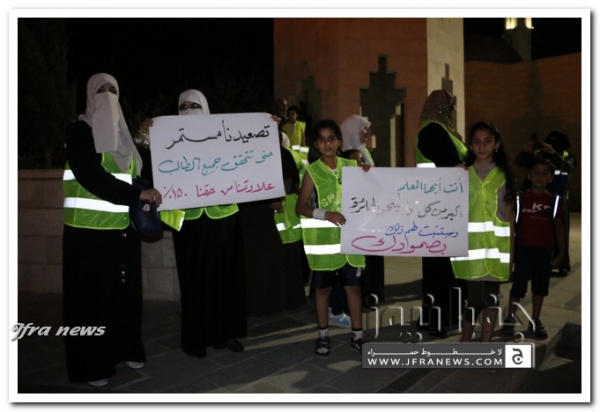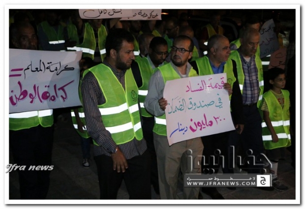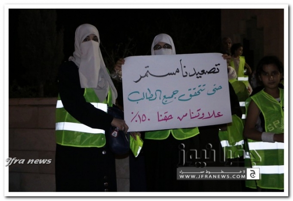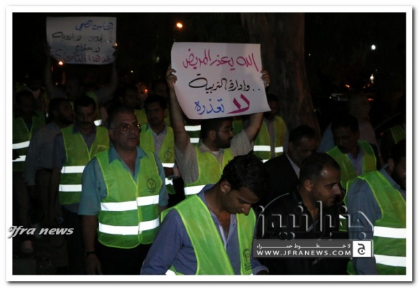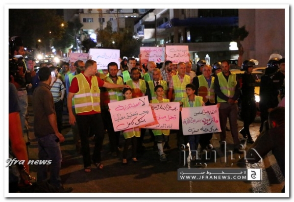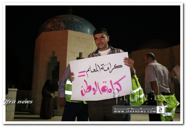 أنطلقت مسيرة لنقابة المعلمين من امام مسجد الملك عبدالله الاول الى نقابة المعلمين ضمت العشرات من اعضاء النقابة حيث رفعت يافطات تطالب بحقوقهم :