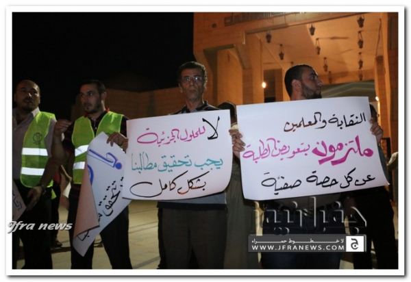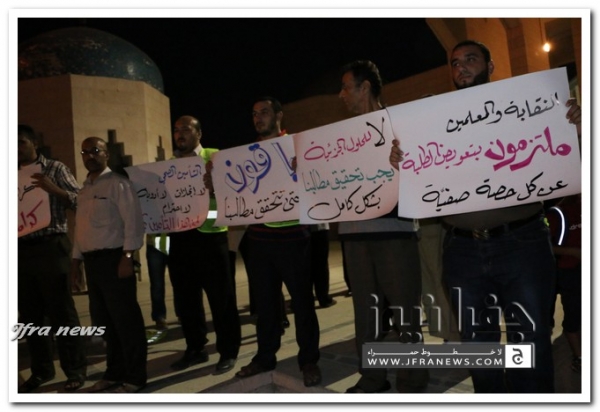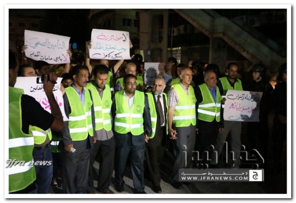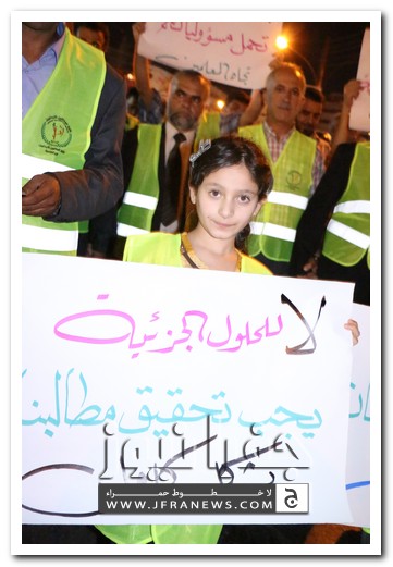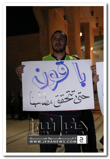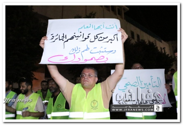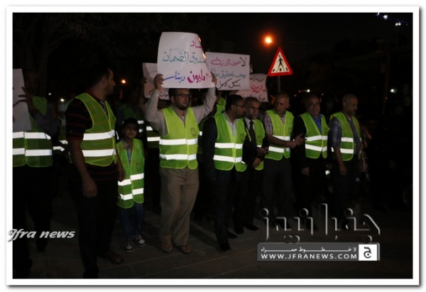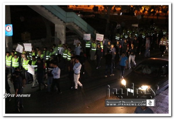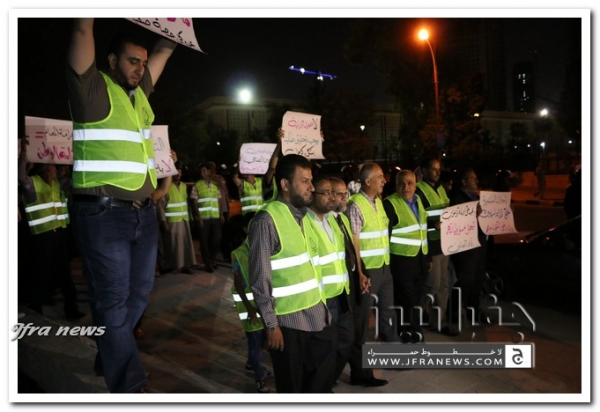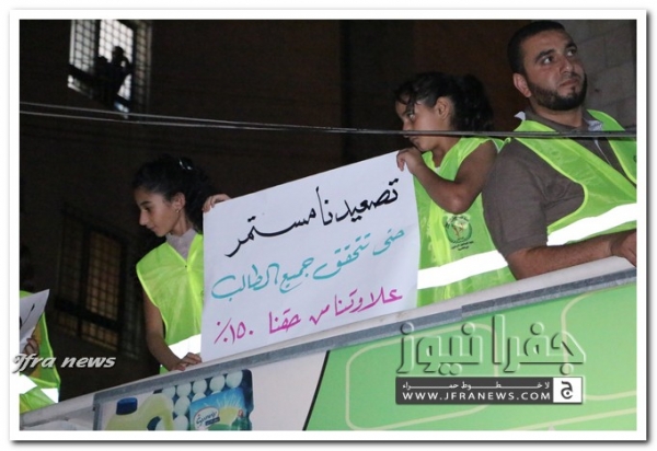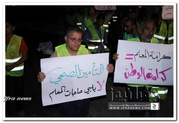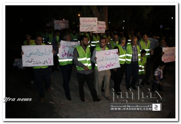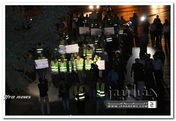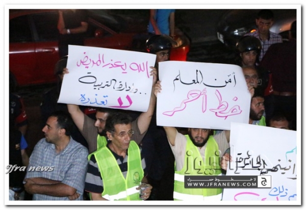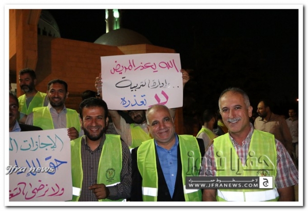 أنطلقت مسيرة لنقابة المعلمين من امام مسجد الملك عبدالله الاول الى نقابة المعلمين ضمت العشرات من اعضاء النقابة حيث رفعت يافطات تطالب بحقوقهم :