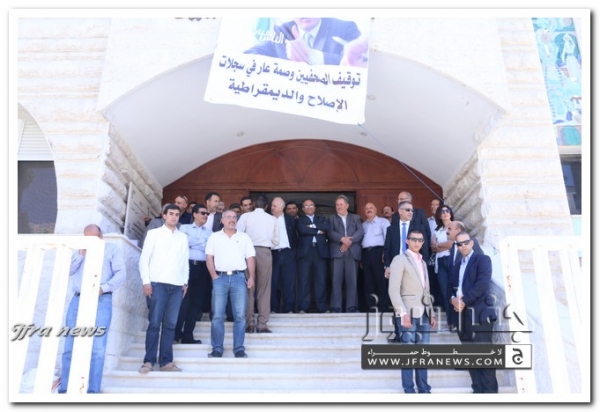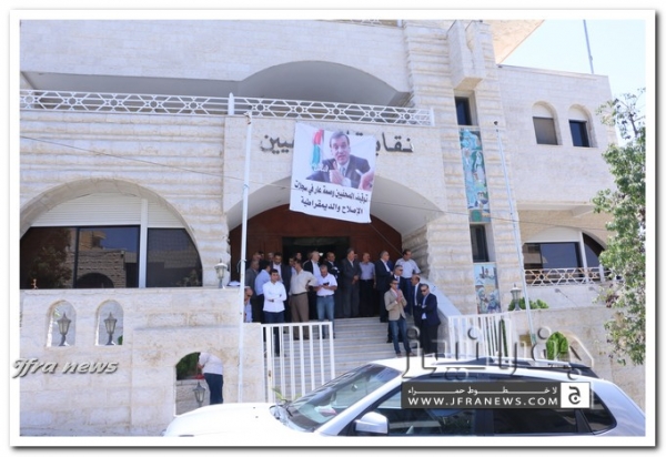 - نفذ مجلس نقابة الصحفيين الخميس وقفة احتجاجية أمام النقابة استنكاراً لتوقيف عبدالهادي راجي المجالي على خلفية نشر مادة صحفية على موقع التواصل الاجتماعي 'فيسبوك'.