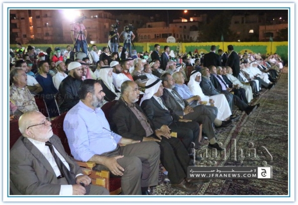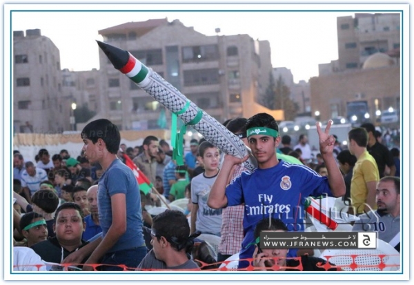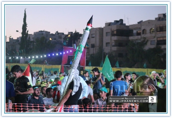 - عقدت الحركة الإسلامية في منطقتي نزال والياسمين مهرجان لبيك يا أقصى الرابع بحضور آلاف المشاركين بمناسبة ذكرى إحراق المسجد الأقصى، حيوا خلاله الشعب الفلسطيني في غزة وجهود المقاومة الفلسطينية كما أبدوا دعمهم وتأييده للمقاومة وطالبوا أهالي الضفة الغربية بالانتفاض في وجه الاحتلال، كما دعوا السلطة الفلسطينية إلى وقف التنسيق الأمني مع الاحتلال الصهيوني، كما طالبوا الأمة بالانتفاض من أجل المسجد الأقصى وحمايته. وشهد المهرجان الذي عقد تحت شعار 'نصر الله وفتح قريب' حضور القيادي في الحركة الإسلامية في الداخل الفلسطيني عبد الرحمن أبو الهيجاء وعدد من قادة الحركة الإسلامية في الأردن، كما تخلل المهرجان مجموعة من الفقرات الشعرية والوصلات الإنشادية شهدت تفاعلاً جماهيرياً. وألقى نائب المراقب العام لجماعة الإخوان المسلمين زكي بني ارشيد كلمة الحركة الإسلامية في الأردن، وجه من خلالها رسالة لأهالي غزة التي تعيش مأساة التواطؤ والخذلان، لكنها تحولت ناراً تحرق الاحتلال ومن وقف بصفه بأن من كان مع الله فلا غالب له، والرسالة الثانية التي وجهها بني ارشيد إلى الاحتلال الصهيوني حيث أكد أن ساعة انتهاء الاحتلال قد اقتربت، وأن من يحلم بالأمان من اليهود فليس له مكان في فلسطين وأن نتنياهو يقودهم نحو الهلاك. وفي الرسالة الثالثة طالب بني ارشيد الجهات الرسمية بتوضيح تصريحات رئيس وزراء الصهيوني نتنياهو بأن الموقف الرسمي العربي يقف معه، كما طالب بسحب السفير الأردني لدى الاحتلال، كما استهجن تعرّض الأقصى لاقتحامات اليهود وسعي اليهود لتقسيمه زمانياً ومكانياً رغم المعاهدات التي تنص تجعل الأقصى تحت الولاية الأردنية. كما دعا بني ارشيد أهالي الضفة الغربية إلى الانتفاض ضد التنسيق الأمني والاحتلال الصهيوني، معبراً عن رفضه لتنسيق السلطة الفلسطينية أمنياً مع الاحتلال في نصف الرسالة الأخيرة التي وجهها وفقاً له. وألقى الناشط في الحركة الإسلامية في منطقتي نزال والياسمين خضر هديب كلمة رحب خلالها بالحضور، ووجه فيها التحية لأهالي القدس والمدافعين عن المسجد الأقصى ضد الهجمة الصهيونية التي تهدف إلى تقسيم الأقصى زمانياً ومكانياً. كما وجه هديب التحية للمقاومة الفلسطينية في غزة وشعبها الصامد والملتف حول المقاومة. وبيّن هديب أن المهرجان الذي يأتي في ذكرى إحراق المسجد الأقصى يهدف إلى التوضيح إلى أن الصراع مع اليهود في فلسطين هو صراع وجودي، وأن الأقصى هو عنوان الصراع. كما شدد هديب على وجوب نصرة الأقصى، وأن المسؤولية أكبر على أهل الأردن، ورأى أن نصرة الأقصى والدفاع عنه تشكل خط الدفاع الأول عن الأردن من القطاع الصهيوني الذي يرى أن الأردن هو الضفة الأخرى له، ووجه هديب الشكر لوسائل الإعلام التي تابعت المهرجان. إلى ذلك القيادي في الحركة الإسلامية في الداخل الفلسطيني عبد الرحمن أبو الهيجاء إن محرقة المسجد الأقصى والهجوم عليه مستمر منذ عام 1969، وإن تغيرت الطريقة والأشخاص في الهجوم على الأقصى. وأضاف: ' لقد ظن الاحتلال أن الانشغال في الحرب الصهيونية على غزة سينسينا عن المسجد الأقصى موضحاً أن الأقصى يشهد كل يوم محرقة جديدة، وأن منع المصلين من دخول الأقصى هو إيذان ببدء التقسيم الزماني والمكاني للمسجد الأقصى. كما بيّن أبو الهيجاء أن هذه الأيام تشهد أسوأ مراحل المسجد الأقصى من منع دخول المصلين والاعتداء على طلاب العلم والمصحف الشريف، وتغليظ العقوبات على المدافعين عنه. وعاهد أبو الهيجاء الأردنيين والأمة العربية على استمرار الدفاع عن المسجد الأقصى. مقتطفات من مهرجان لبيك يا أقصى الرابع • تبرعت إحدى السيدات بعشرين دونماً من أرض تملكها في منطقة الموقر لأهالي غزة. • سماء المهرجان تزينت بالأعلام الأردنية والفلسطينية ورايات الإخوان المسلمين. • تواجد عدد كبير من البائعة الجائلين بجوار ساحة المهرجان، حيث قاموا ببيع الكوفية والأعلام الفلسطينية بالإضافة لبيع التيشيرتات التي تحمل عبارات تضامنية مع المقاومة ال