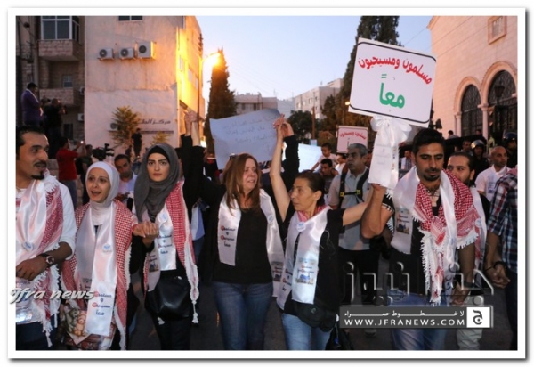 حداد في كلمة له خلال المسيرة، ان الاردنيين، مسلمين ومسيحيين، يرفضون
