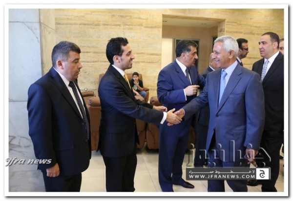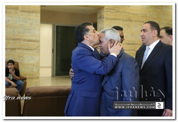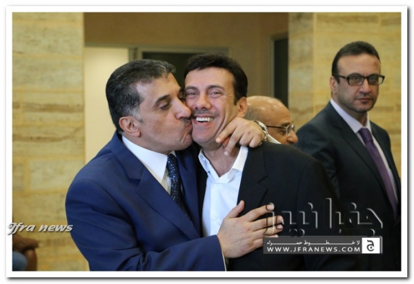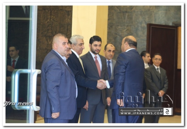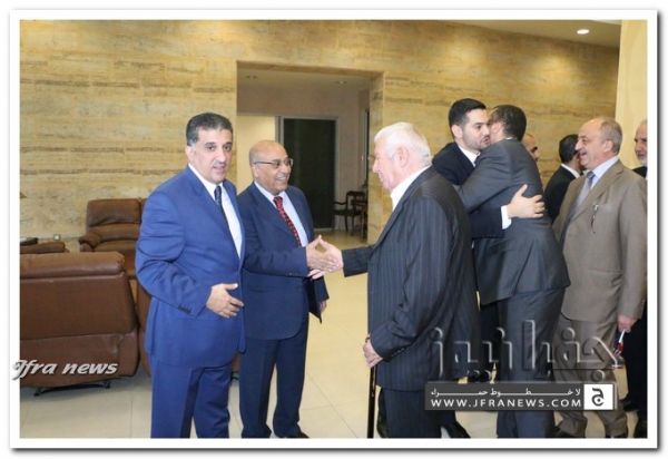 استقبال الجاهه وجهاء وشيوخ عشيرة العزب النسور وعلى راسهم معالي الشيخ مروان الحمود حيث قام بالطلب معالي حمدي الطباع نيابة عن ال حتاحت لابنهم الطيار سيف بدر حتاحت يد الانسة العنود عاصم العزب وتكرم معالي الشيخ مروان الحمود بتلبية طلبهم