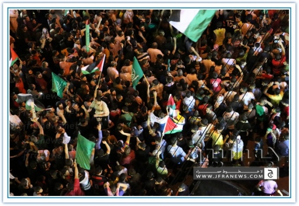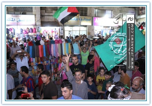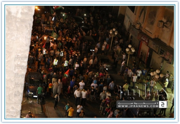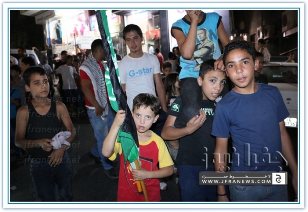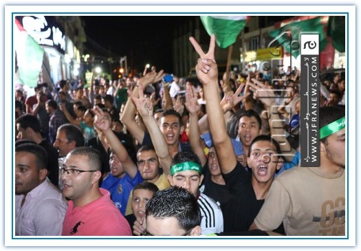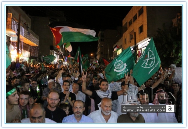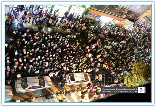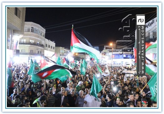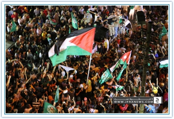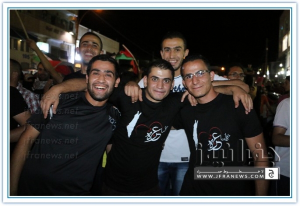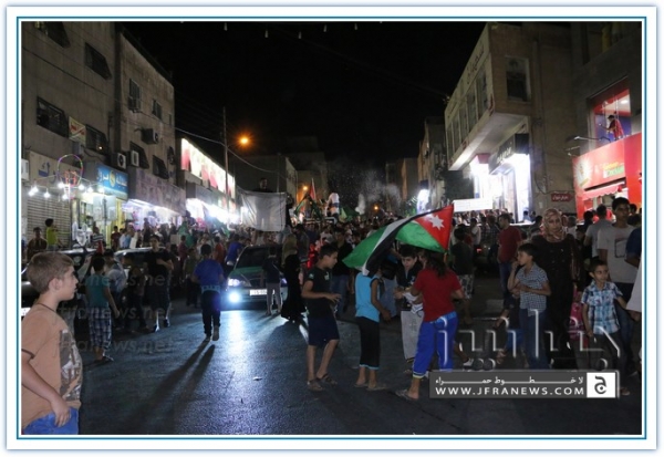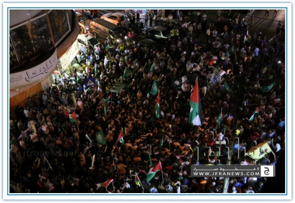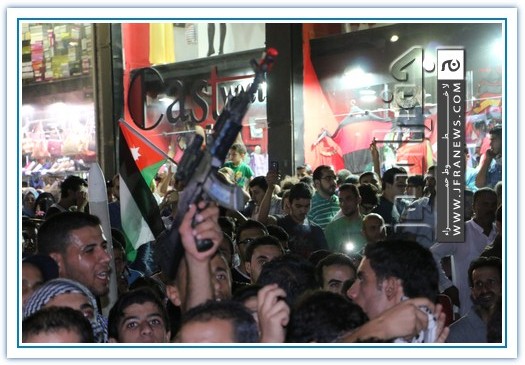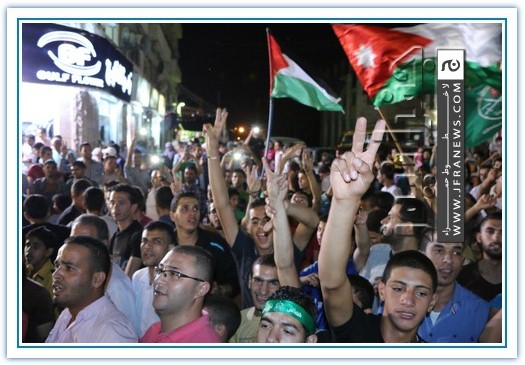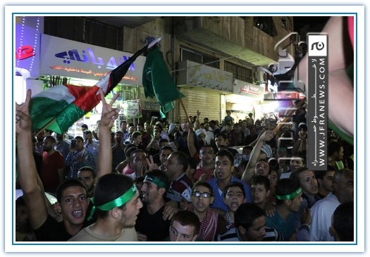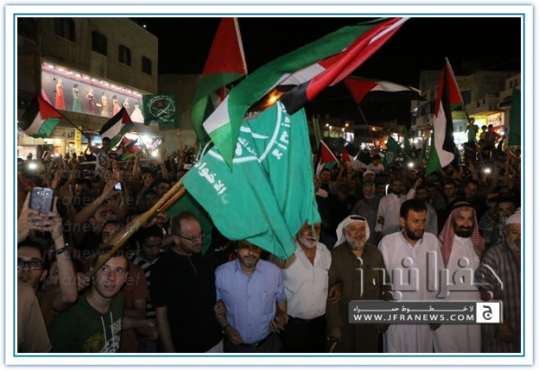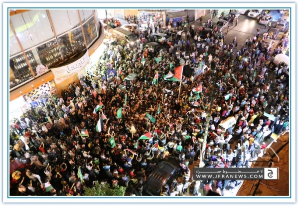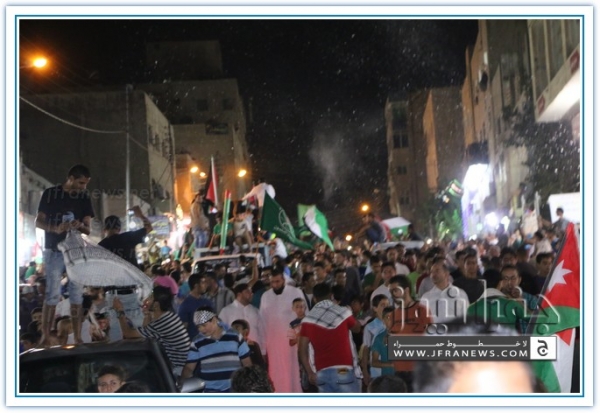 انطلقت مسيرة فرح بأنتصار المقاومة الفلسطينيه في غزة مساء اليوم في منطقة الهاشمي الشمالي حيث أحتشد المئات في مسيرة فرح في شوارع الهاشمي مطلقين الالعاب النارية في سماء المنطقة والاغاني الوطنية الفلسطينية وزغاريد من النسوة والقيت على الجموع كميات كبيرة من الحلوى من نوافذ البيوت