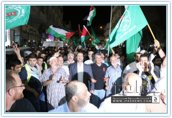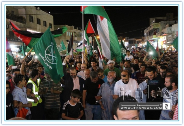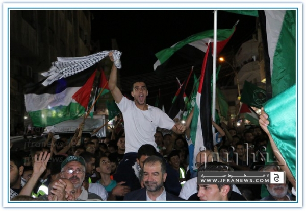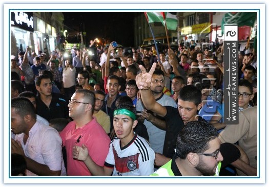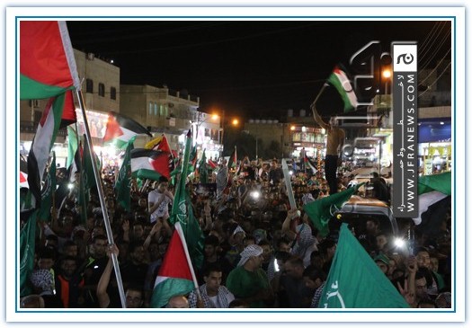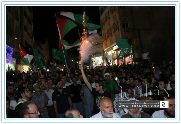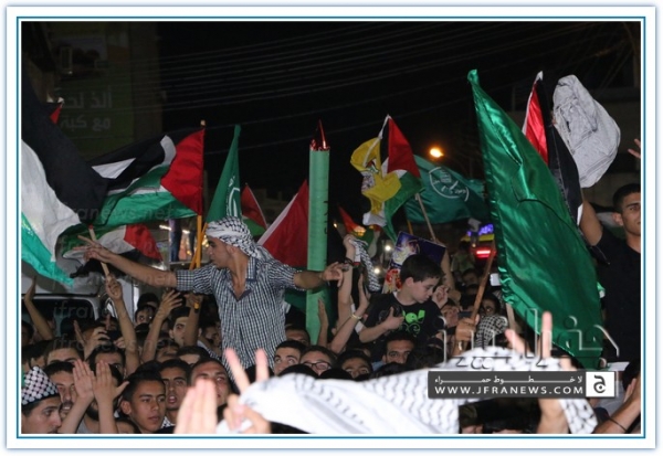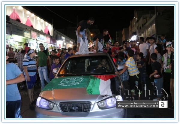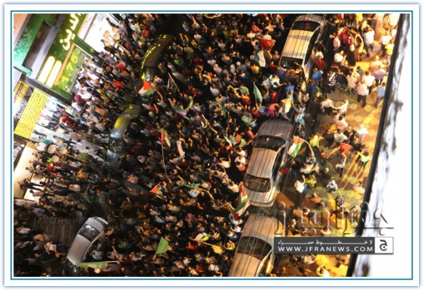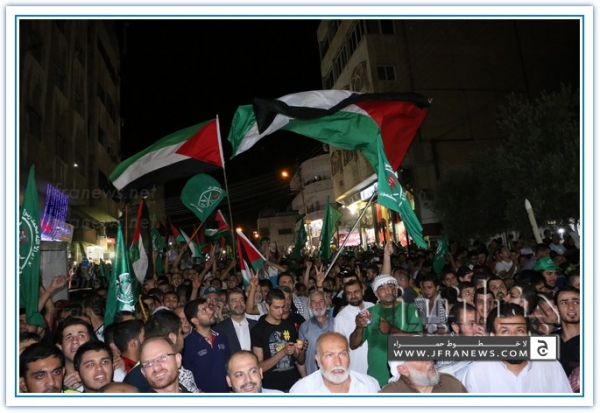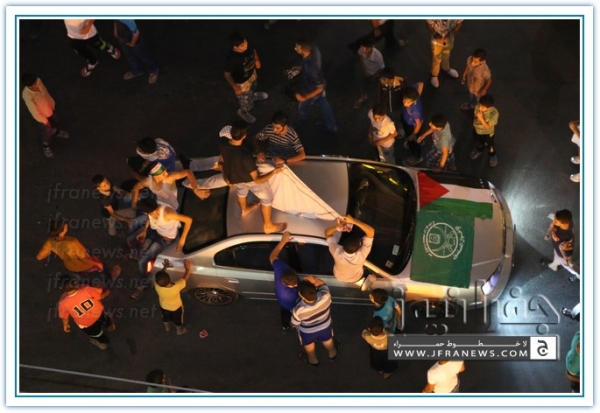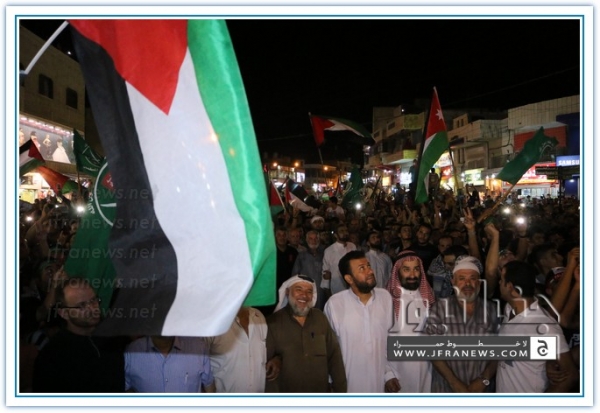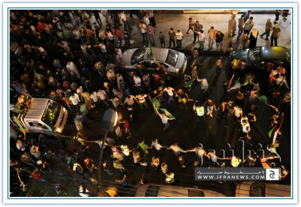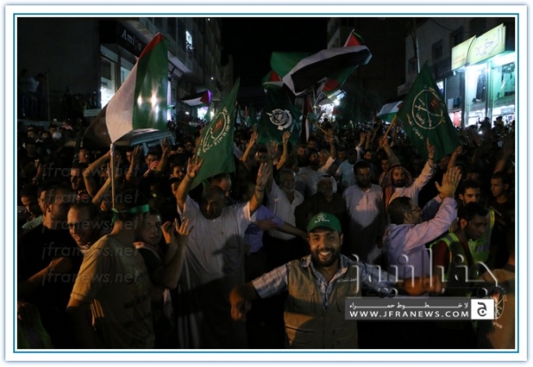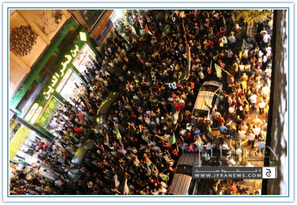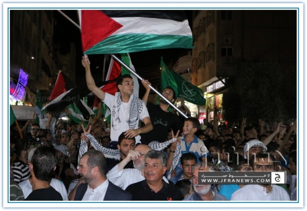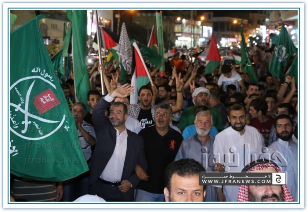 انطلقت مسيرة فرح بأنتصار المقاومة الفلسطينيه في غزة مساء اليوم في منطقة الهاشمي الشمالي حيث أحتشد المئات في مسيرة فرح في شوارع الهاشمي مطلقين الالعاب النارية في سماء المنطقة والاغاني الوطنية الفلسطينية وزغاريد من النسوة والقيت على الجموع كميات كبيرة من الحلوى من نوافذ البيوت