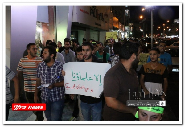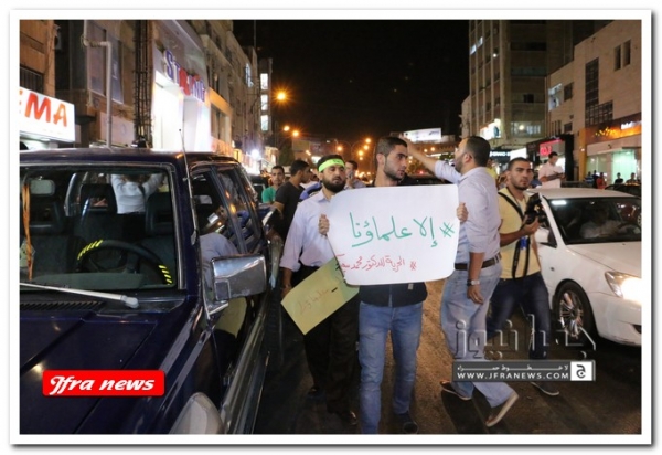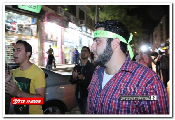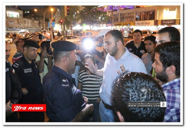 أقيم مساء اليوم اعتصام لشباب " الاخوان " على دوار فراس - جبل الحسين وبعد أن طلبت الأجهزة الامنية نقل اعتصامهم،من وسط الشارع الى طرف الشارع المقابل قوبل من قبل المعتصمين بالرفض حيث تحول الى ماراثون في ازقة والشوارع الفرعية لجبل الحسين مرورا بالمخيم وشارع الاردن والنزهه والقصور حيث كان منوي اقامته بالقرب من دوار فراس، للمطالبة بالافراج الفوري على الدكتور محمد سعيد بكر والخطيب عادل عواد. وكانت محكمة أمن الدولة قررت إيقاف كل من الدكتور محمد سعيد بكر والداعية عادل عواد القياديين في الحركة الإسلامية، بتهمة تقويض نظام الحكم على خلفية خطابات للدكتور بكر في مهرجانات نصرة غزة، وخطبة جمعة للداعية عادل عواد قبل ثلاثة اسابيع. واكد المحامي عبد القادر الخطيب تأجيل مدعي عام محكمة أمن الدولة النظر في طلبات الكفالة المقدمة لكل من الدكتور محمد سعيد بكر والداعية عادل عواد الى غد الخميس للبت فيها.