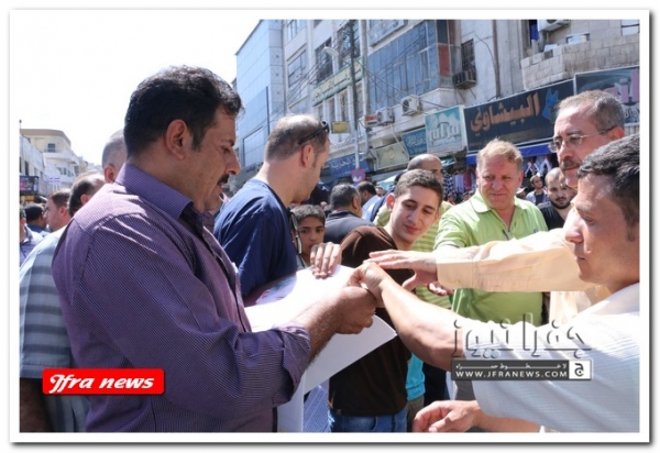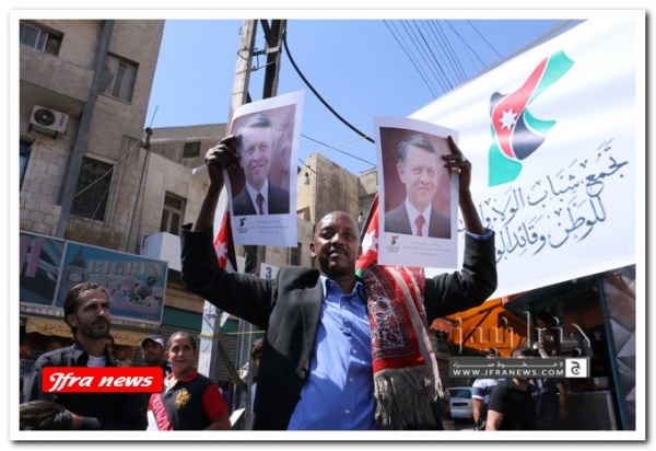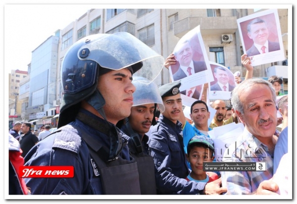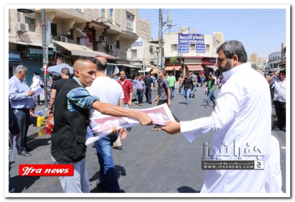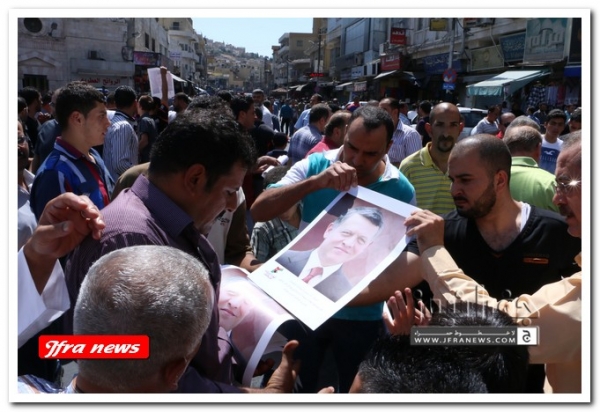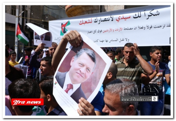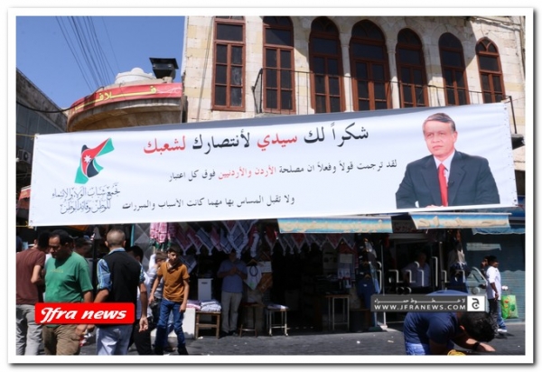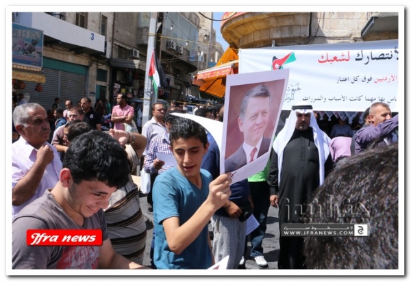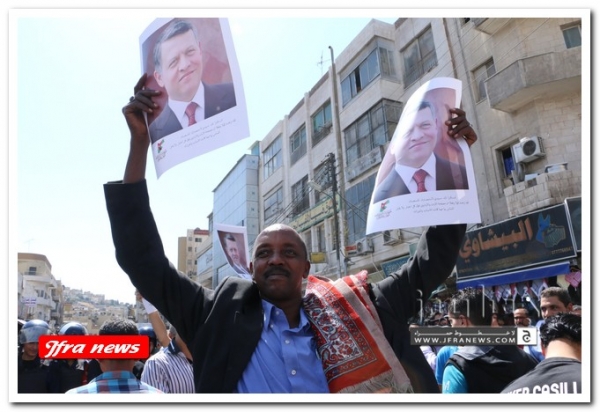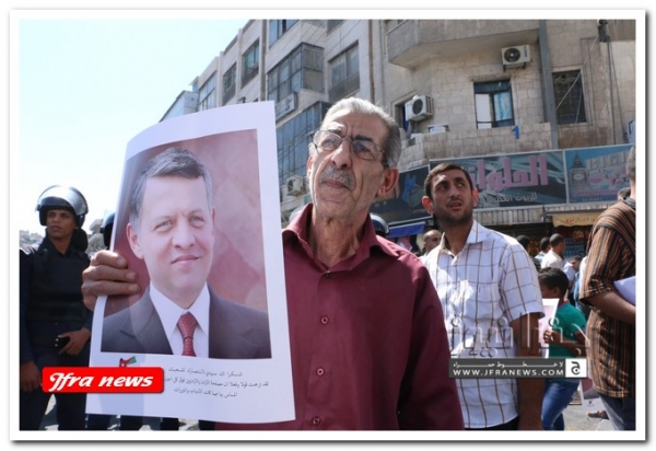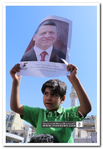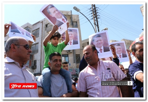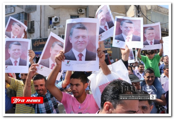 جفرا نيوز اوسيد صبيحات اقام تجمع شباب الولاء والانتماء وقفة شكر للملك على رد مشروع قانون التقاعدي للنواب والاعيان حيث قام التجمع بتوزيع بيان وصور جلالة الملك