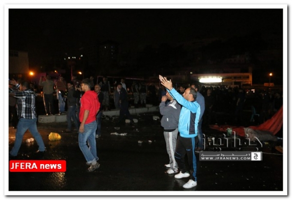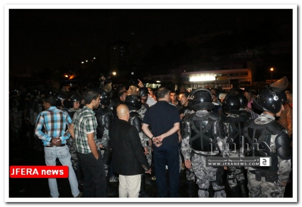 وهتف المحتجون " الشعب يريد ..اسقاط الأمين ".."وليش يا عقل ليش..احنا نموت وانت تعيش.. وما ضل لنا لقمة عيش " .. "الشعب مل من السكوت يحيا كريماً أو يموت".
